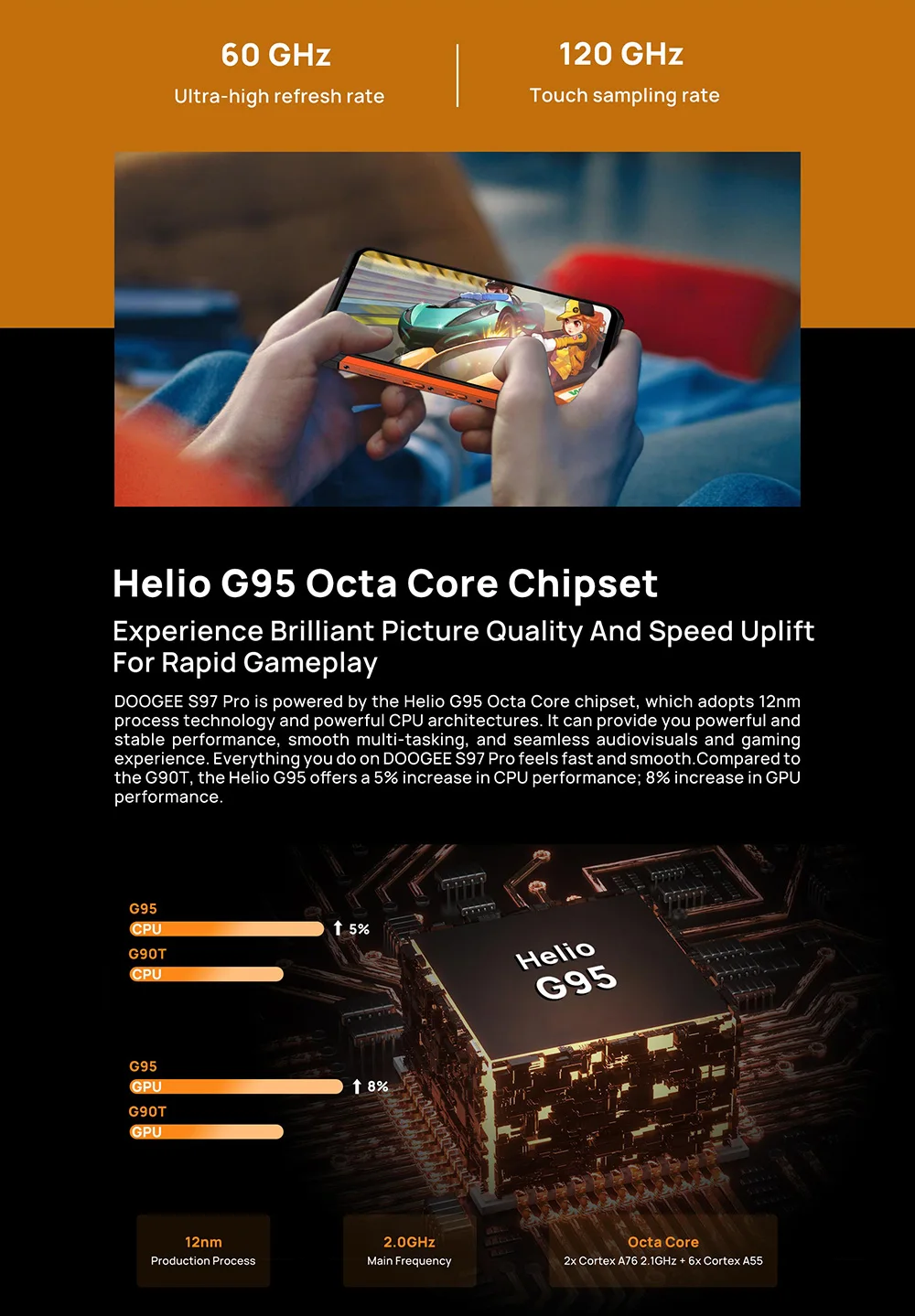 Основные характеристикиDOOGEE S97 Pro 8 Гб 128 ГБ глобальная версия с оригинальным зарядным устройством ЕС!