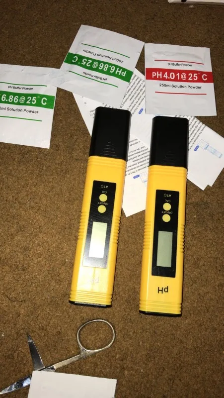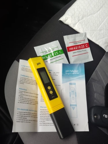 замеры питьевой воды показали 6.8рн, сотки скачут постоянного показателя точного нет. калибровочным растворами откалибровался на точках 4.01 и 6.86.вообще за цену 339.77 для дома подходит отлично. брал для контроля в аквариуме. батарейки отдельно покупал в комплекте нет