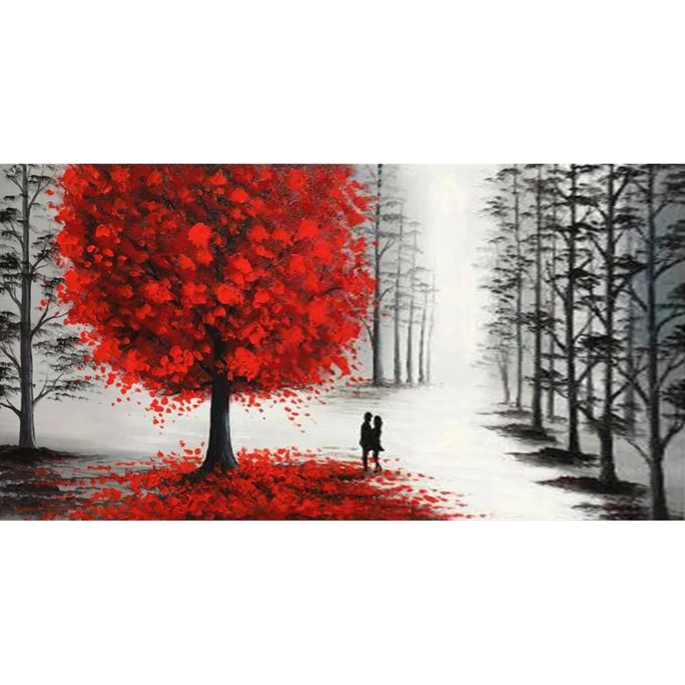 Холст Размер 5d DIY мозаика Вышивка Дерево лес Алмазная картина полный квадраткруглый черный и красный пара Пейзаж Настенный декор
