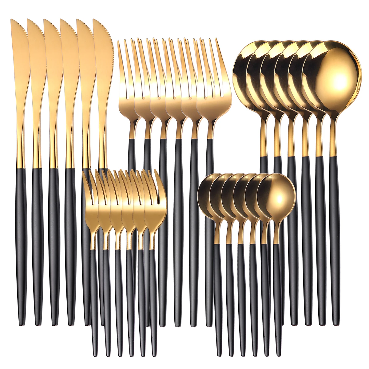 Набор золотых столовых приборов из нержавеющей стали, черные роскош...