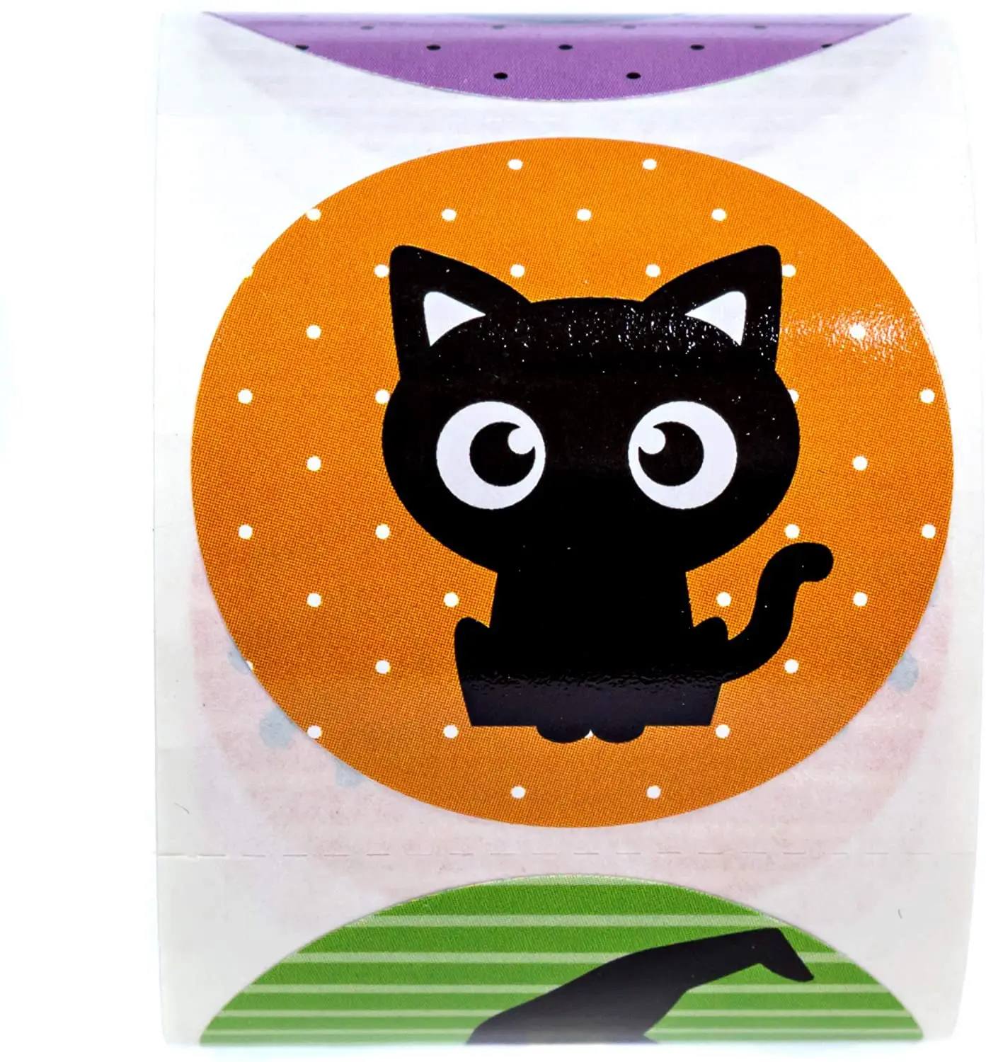 1 дюйм, счастливый Хэллоуин, маленький паук, Черный кот, детская игрушка, забавное животное, спасибо, декоративная наклейка, этикетка 50-500 шт.