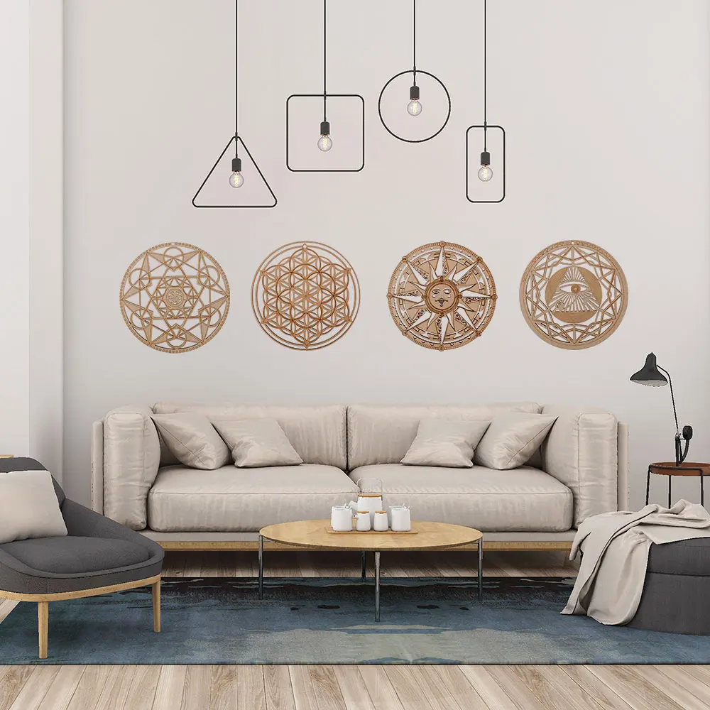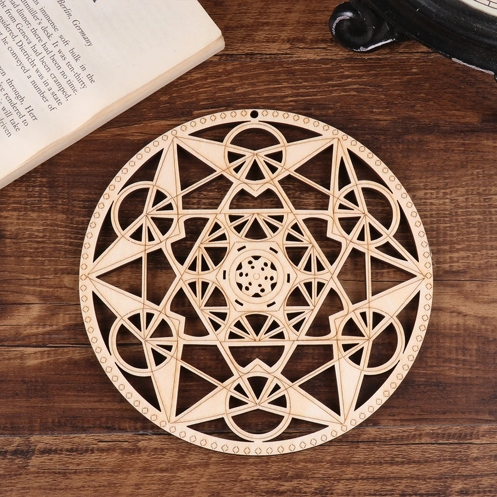 Настенный Коврик 14 см с изображением священной геометрии, деревянная вывеска, кристальная сетка, медитация, чакра, цветок жизни, лазерная вырезка, подставка под горку, деревянный домашний декор