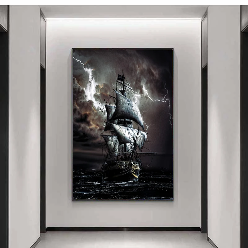 Пиратский корабль в море, холст, картина, черный парусник, винтажные плакаты и принты, сосуды, настенные картины для гостиной, декор Quadro