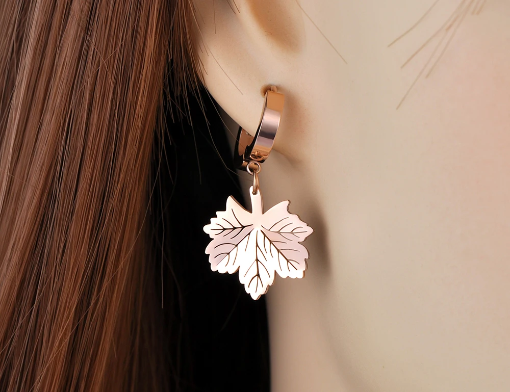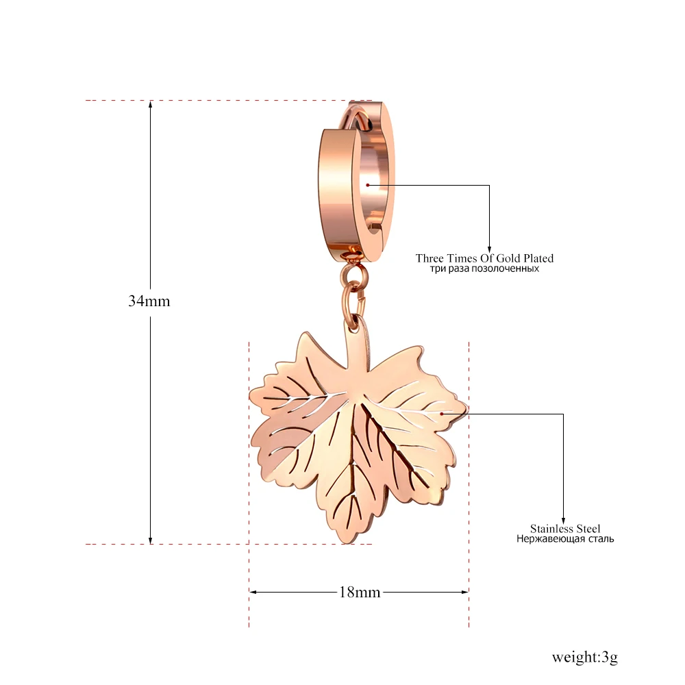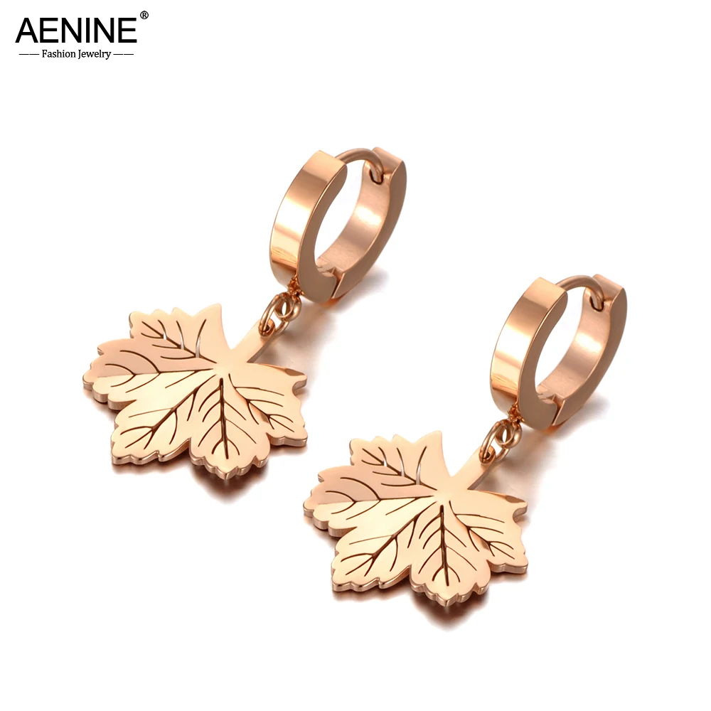 Женские серьги-кольца AENINE из нержавеющей стали, ювелирные украшения с изображением кленового листа из титана и розового золота, в офисном стиле, AE20093, на лето