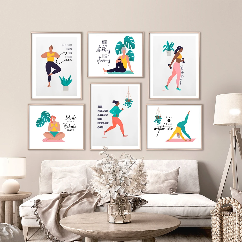Современная Художественная масляная живопись фитнес Йога Холст Картина принты для женщин плакаты и принты для тренажерного зала цитата на стену украшение