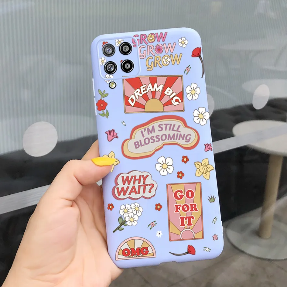 Чехол для Samsung Galaxy A22, чехол с милыми буквами и цветами, силиконовый чехол для Samsung A22 4G 5G A 22 2021