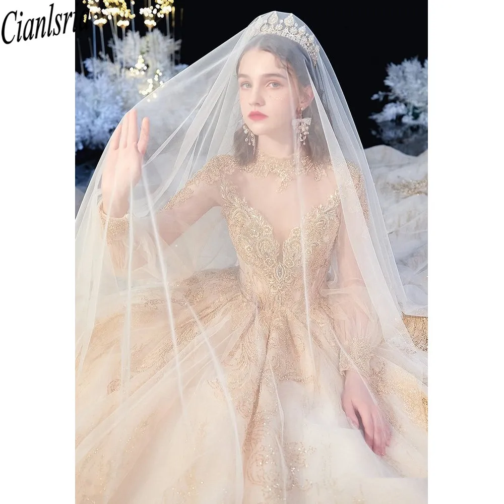 Роскошные арабские Свадебные платья цвета шампанского, бальное плат...
