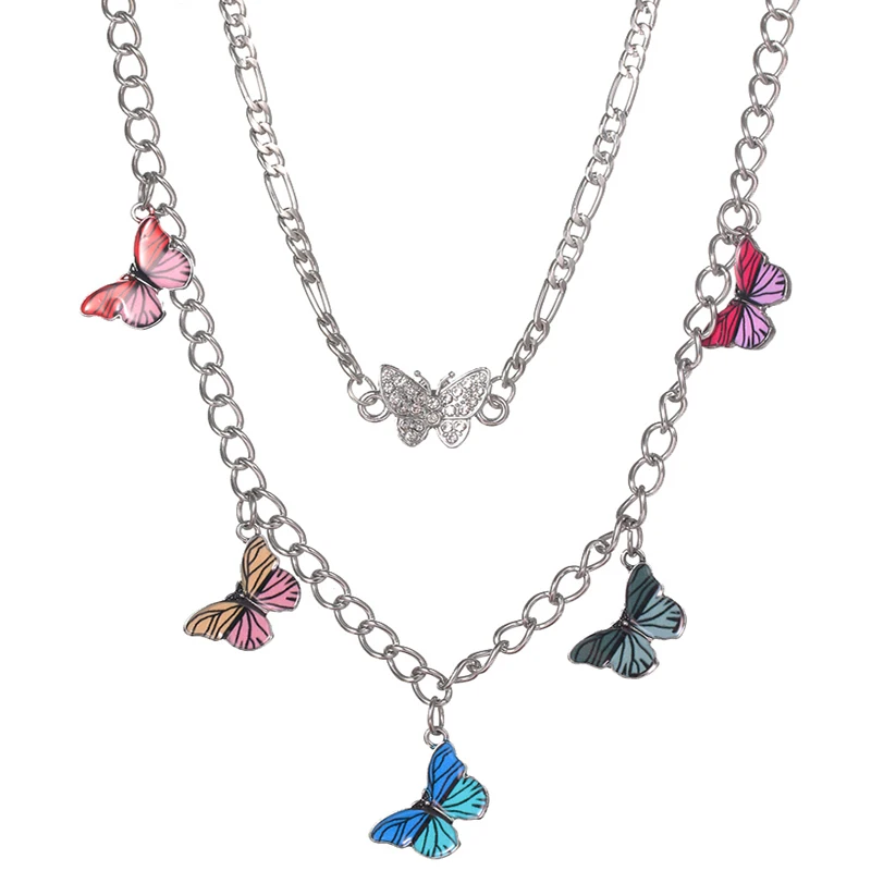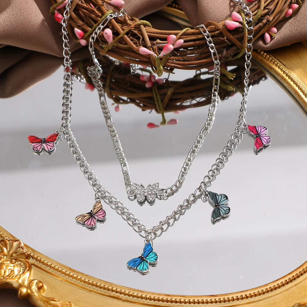 Ожерелье женское, многослойное, с подвеской в виде бабочки