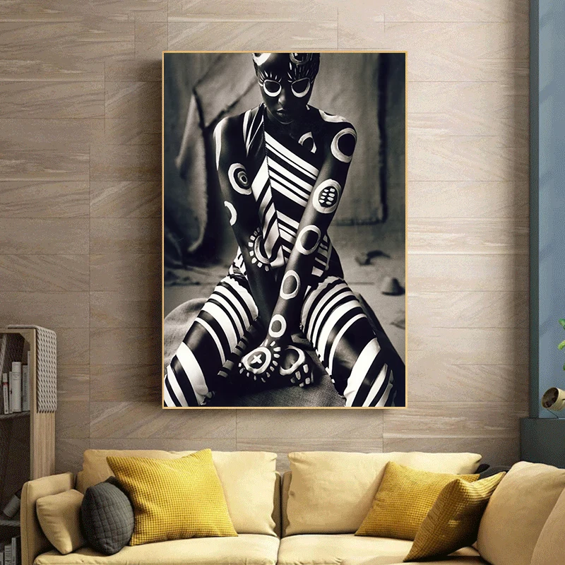 Плакат с изображением Африканской женщины, черно-белый узор, HD-печать, Картина на холсте, уникальная фигурка, настенные картины, декор для гостиной