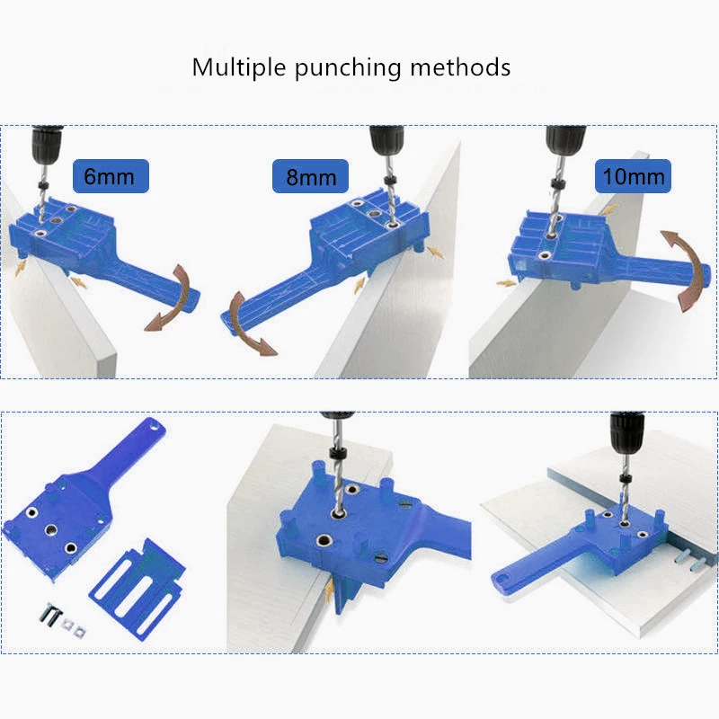 -Износостойкие металлические втулки обеспечивают точное выравнивание при сверлении отверстий; Регулируемый забор может точно расположить штифт для достижения максимальной прочности соединения.