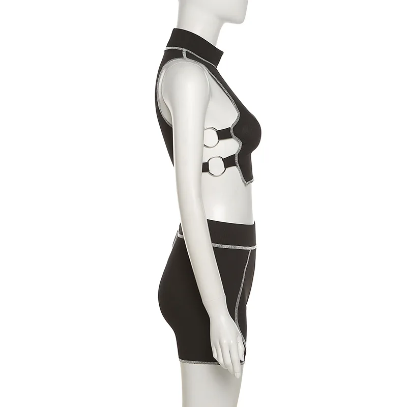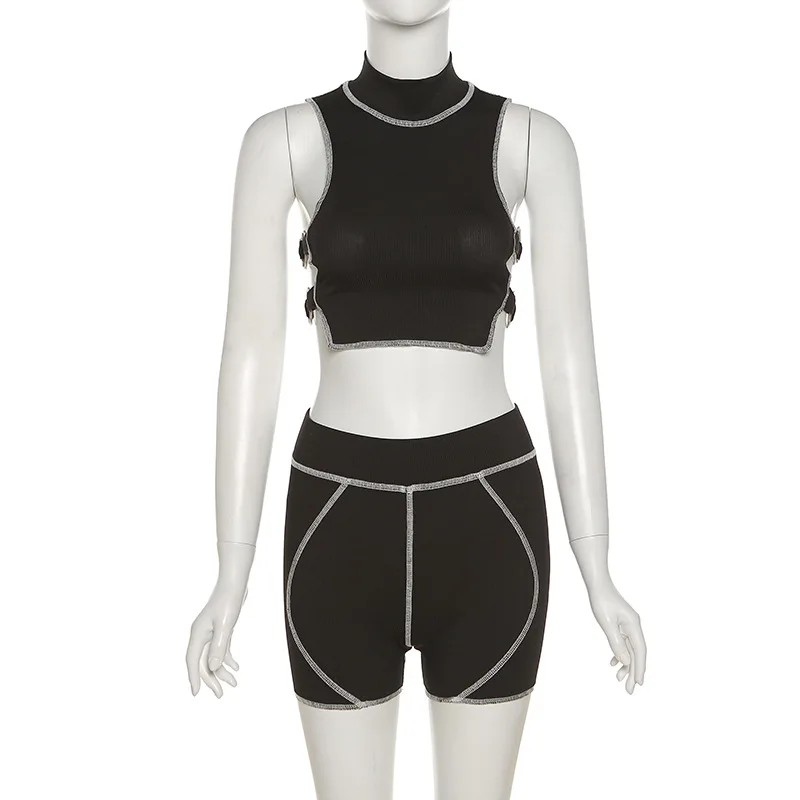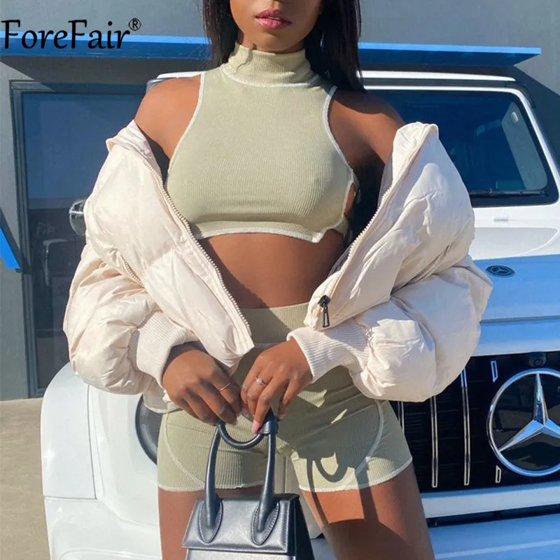 Женский спортивный костюм Forefair, черный короткий топ и сексуальные байкерские шорты, уличная одежда, повседневные комплекты из двух предметов, лето 2021