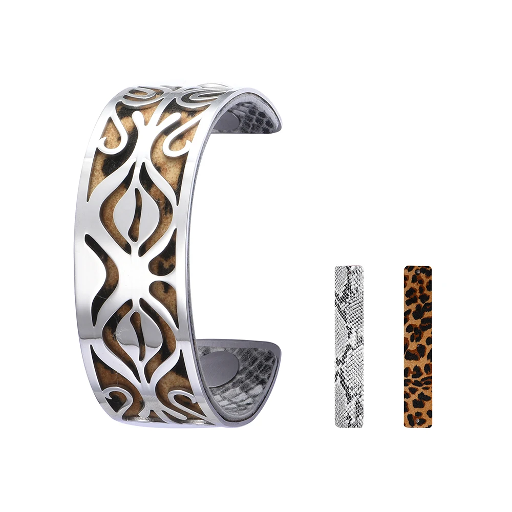 Женский Браслет-манжета из нержавеющей стали, со сменной кожей
