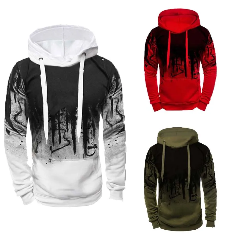Осенне-зимний мужской комплект из 2 предметов, теплый Повседневный свитер с длинными рукавами и принтом брызг-чернил, свитер с капюшоном, топ + спортивные штаны, спортивный костюм
