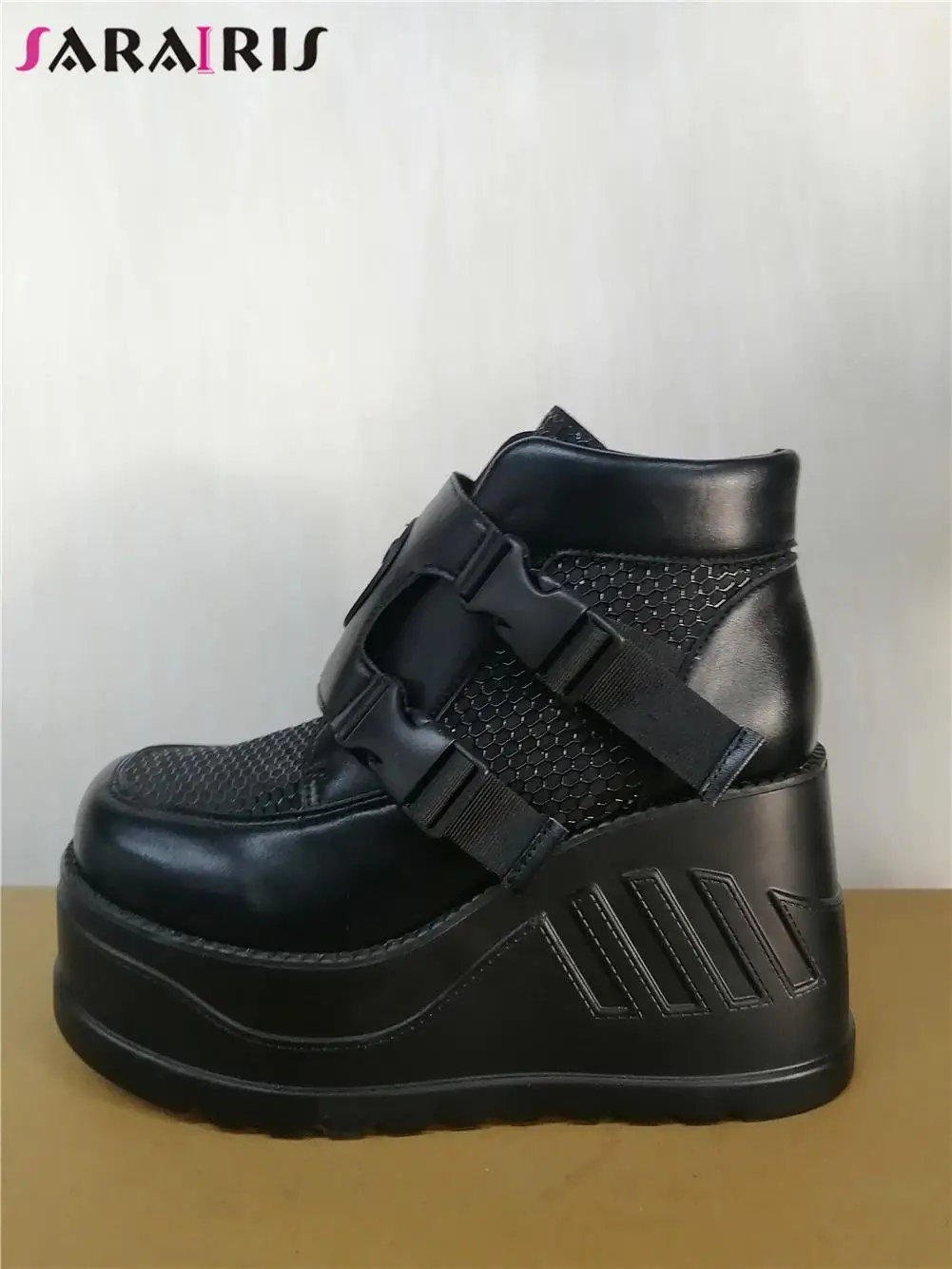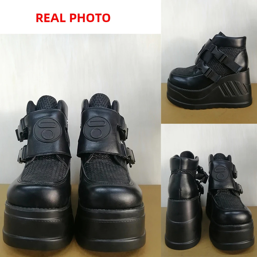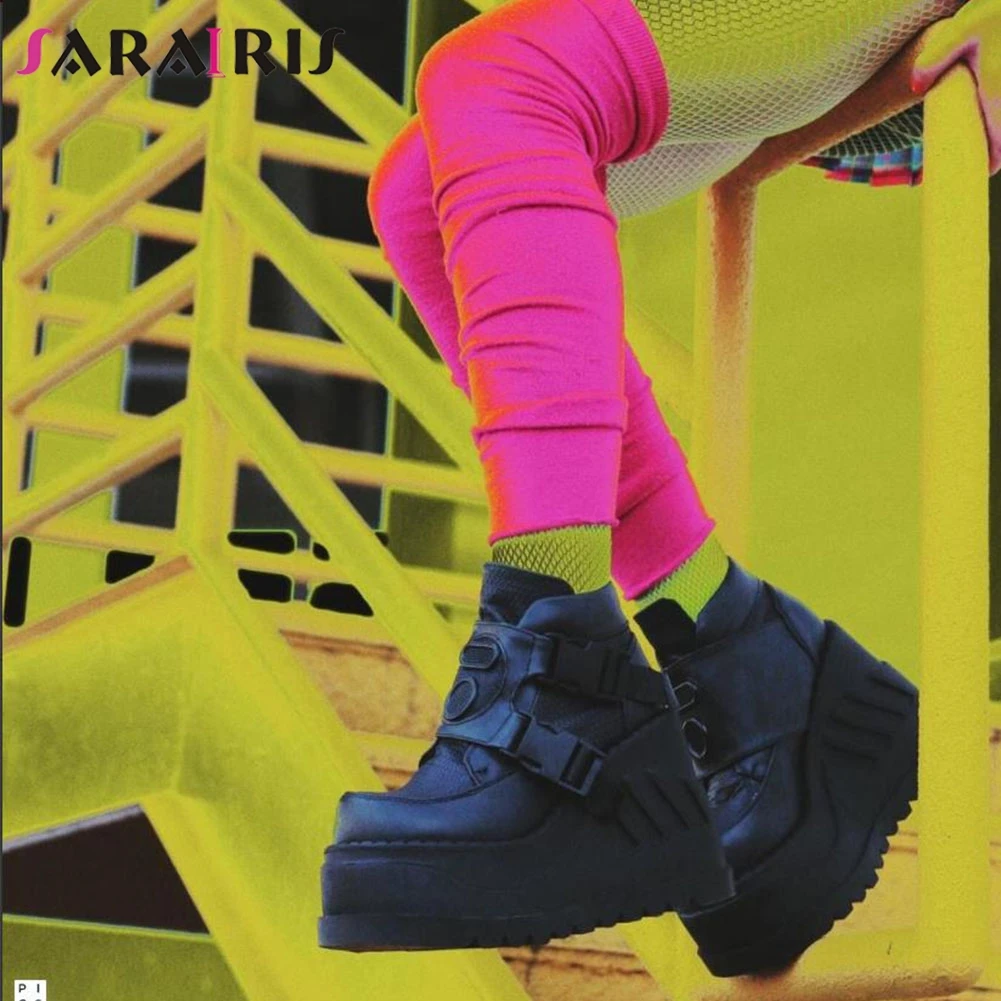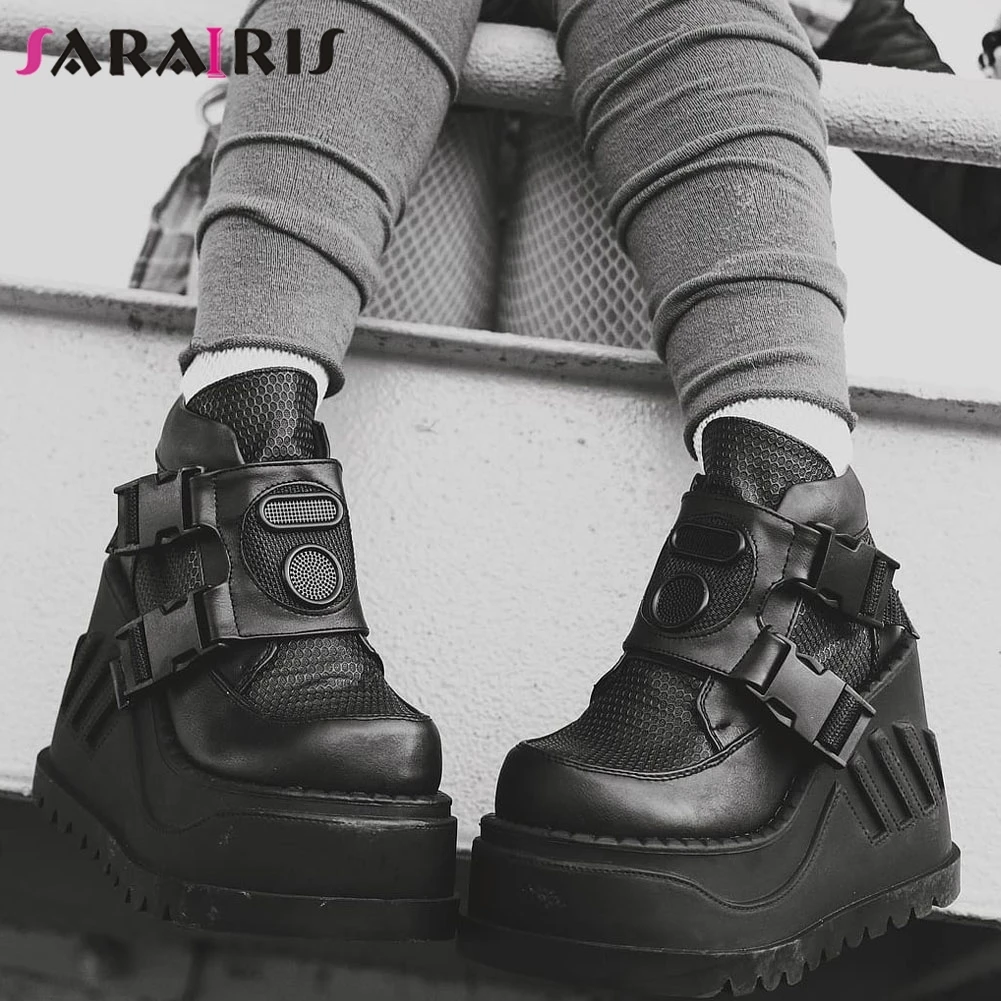SaraIris INS/Лидер продаж, женские мотоциклетные ботинки черные ботинки на платформе с пряжкой в сеточку повседневная женская обувь в стиле панк, готика, большой размер 43