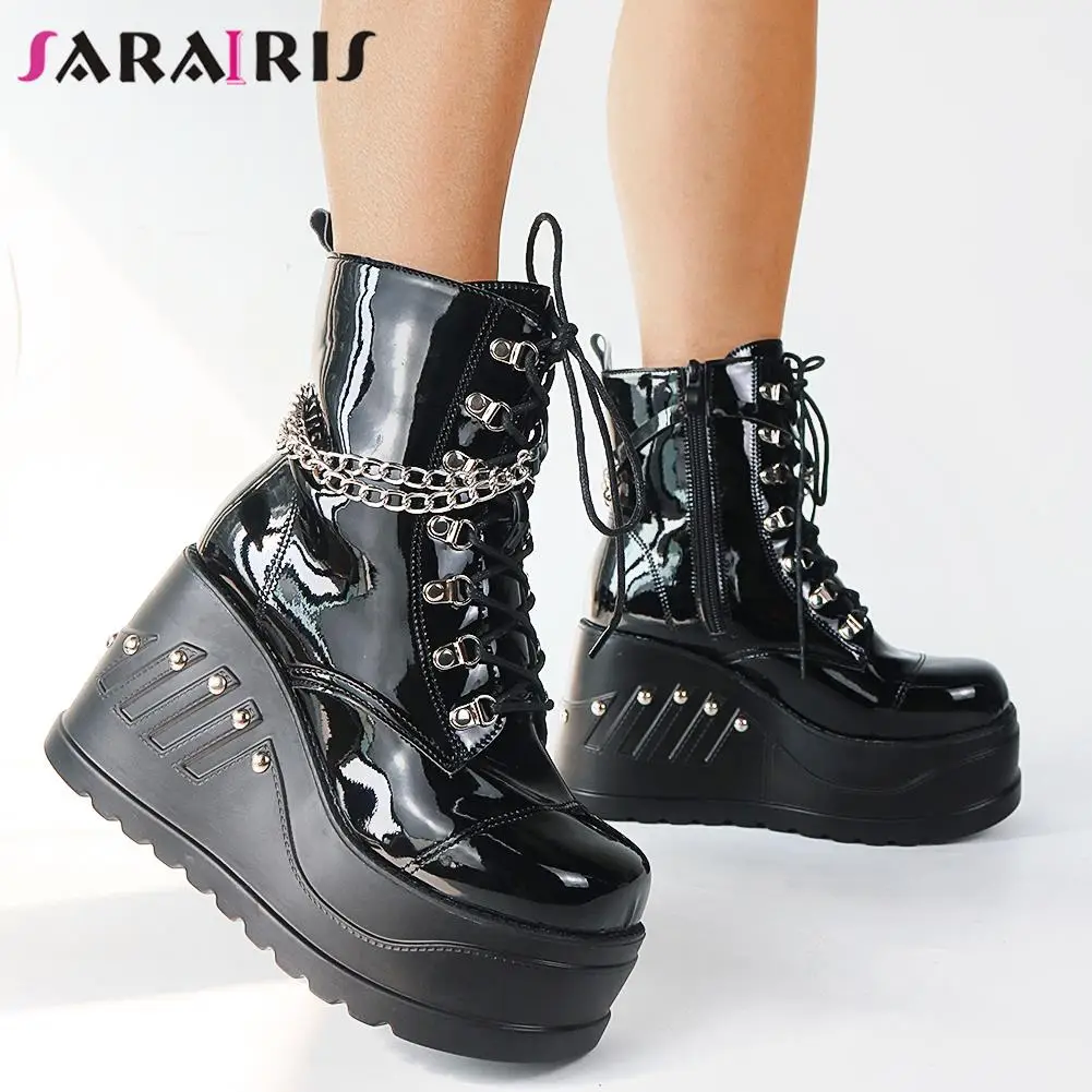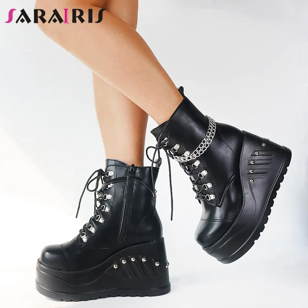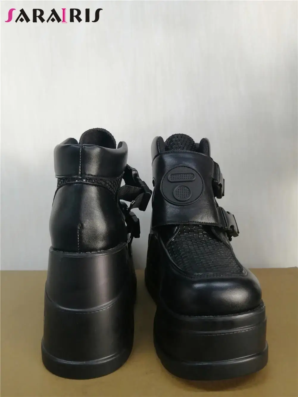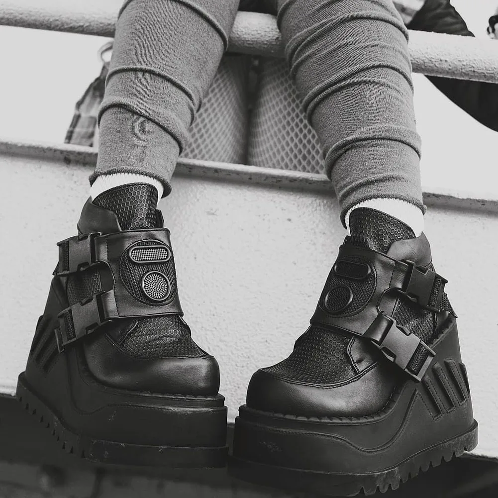 SaraIris INS/Лидер продаж, женские мотоциклетные ботинки черные ботинки на платформе с пряжкой в сеточку повседневная женская обувь в стиле панк, готика, большой размер 43