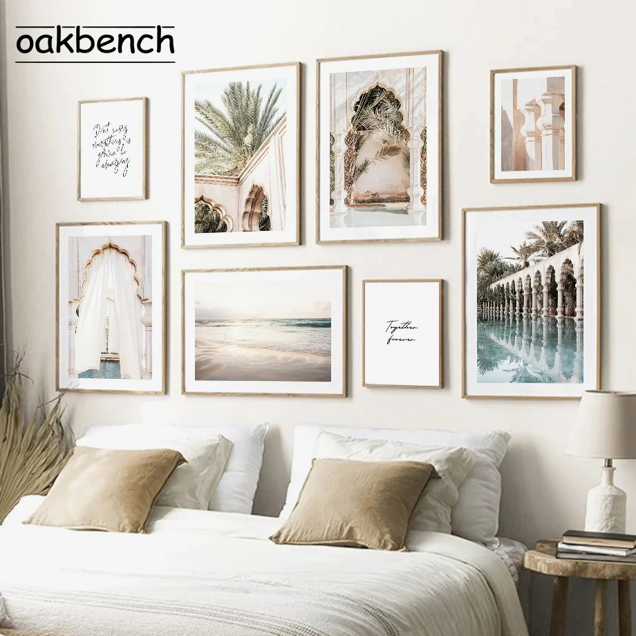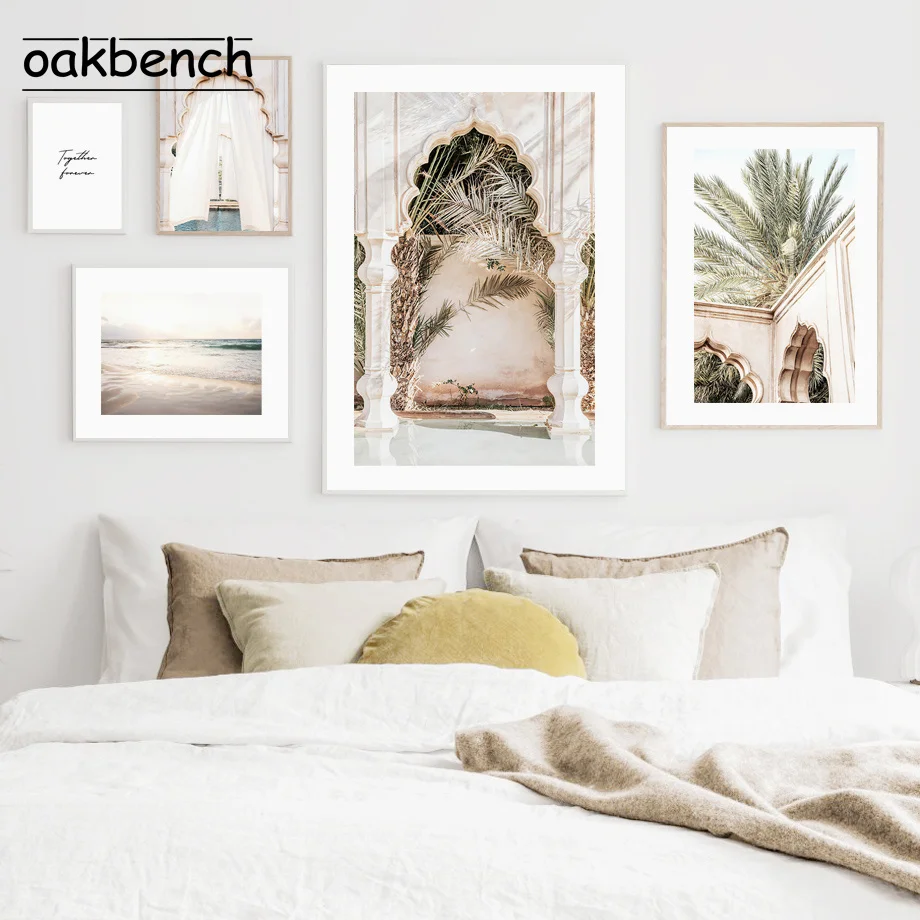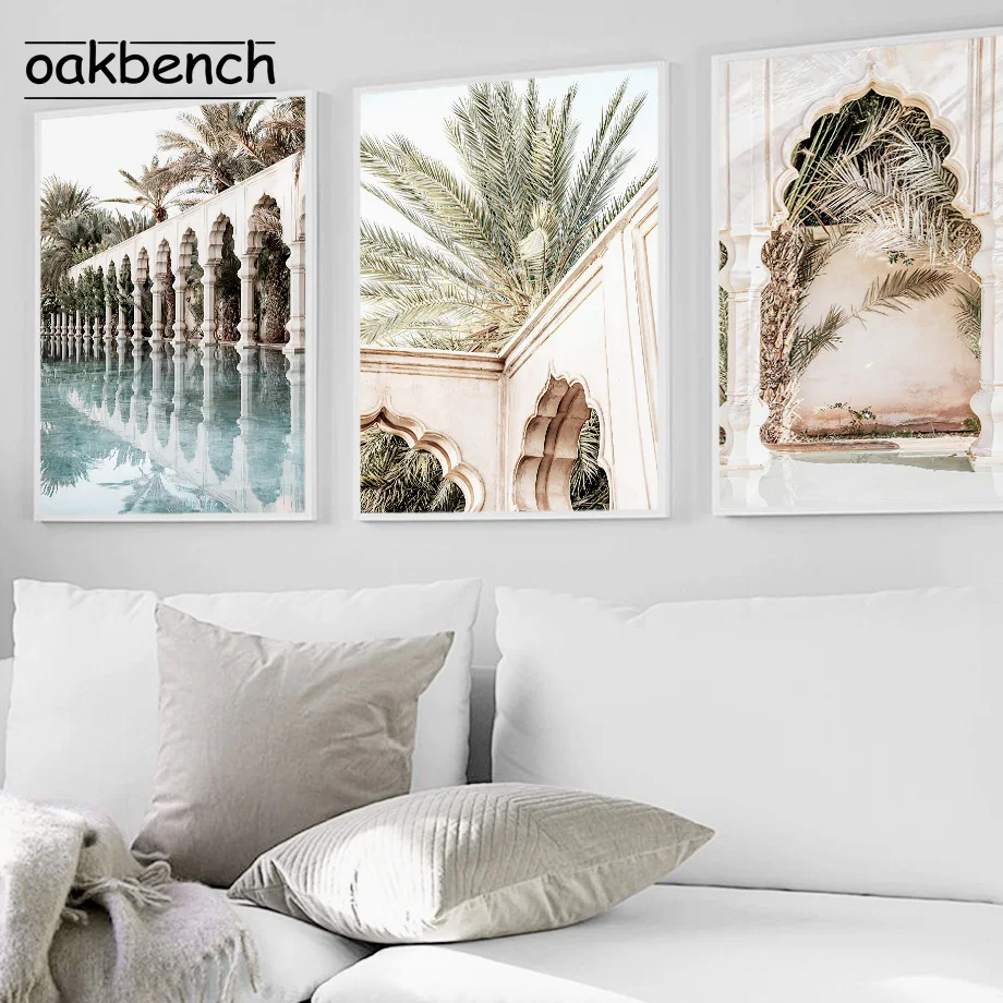 Настенный плакат с изображением пляжа, моря, пальмового листа, сада, художественный принт, Исламская Картина на холсте, настенные картины в скандинавском стиле для гостиной, домашний декор
