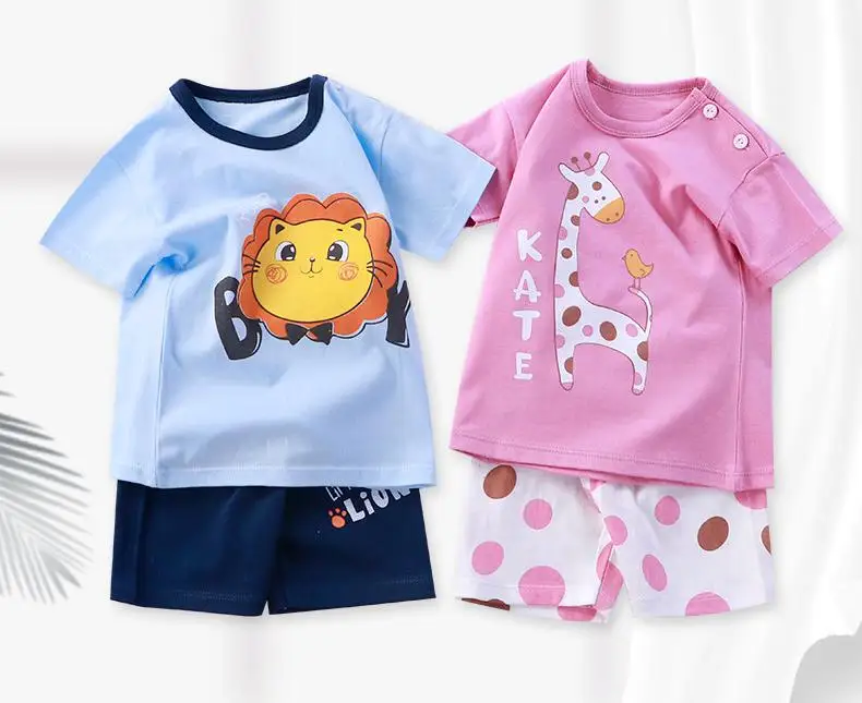 Хлопковая одежда для маленьких мальчиков и девочек, летний костюм, ...