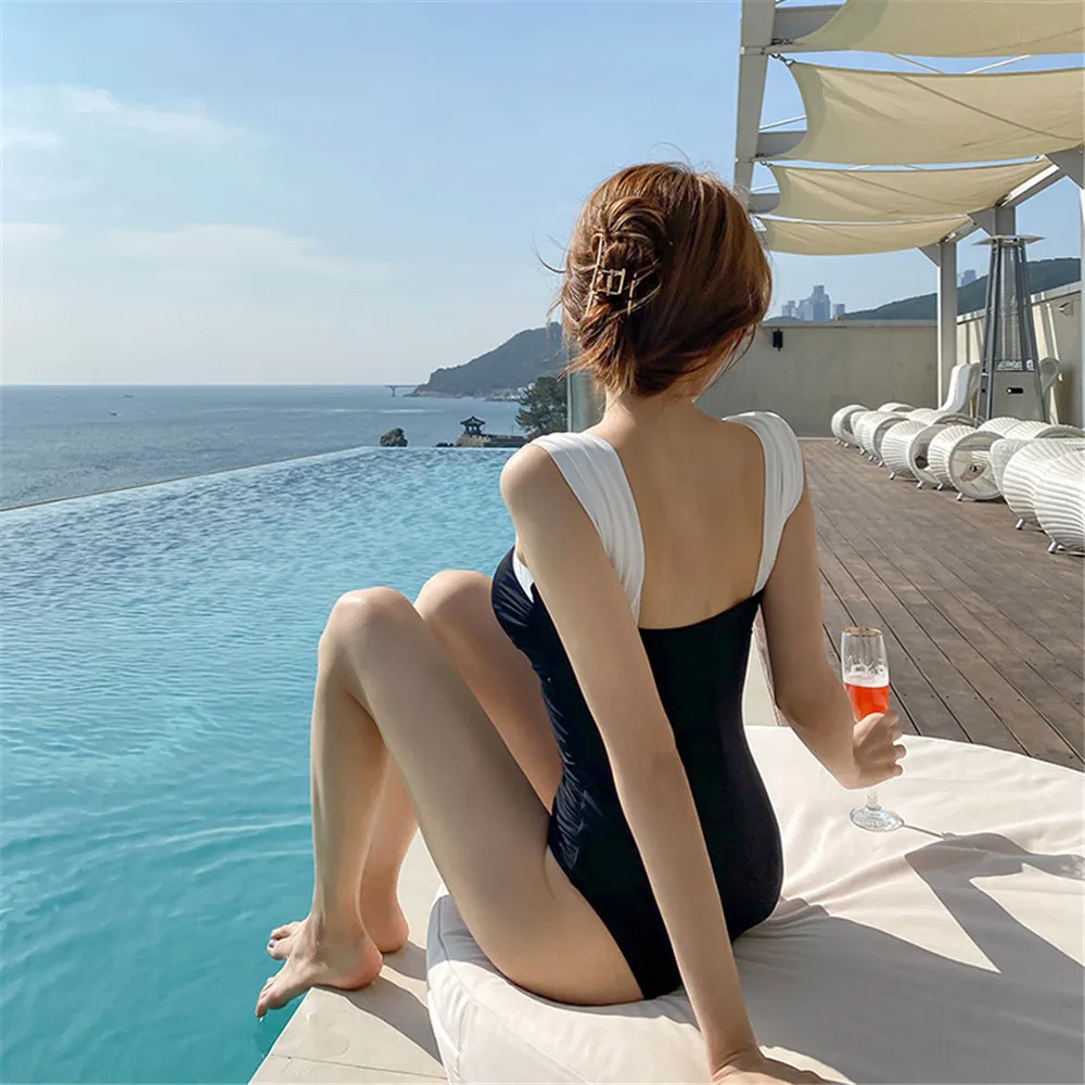 Цельный купальник в Корейском стиле, Женская однотонная одежда для ...