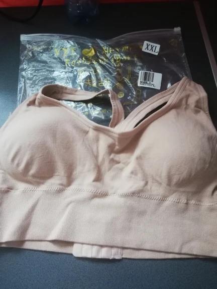 Доставка быстрая,через постамат,за нее+5.А вот качество товара...На мой 48-50 рр.при чашках С размер 2XL великоват-материал здорово растягивается.Форму не держит,чашки со вкладышами "ерзают"-не подшиты внутрь.Что-то я не поняла смысла такого спортивного лифчика-не держит,грудь в нем плоская,дискомфорт от швов и застежки..