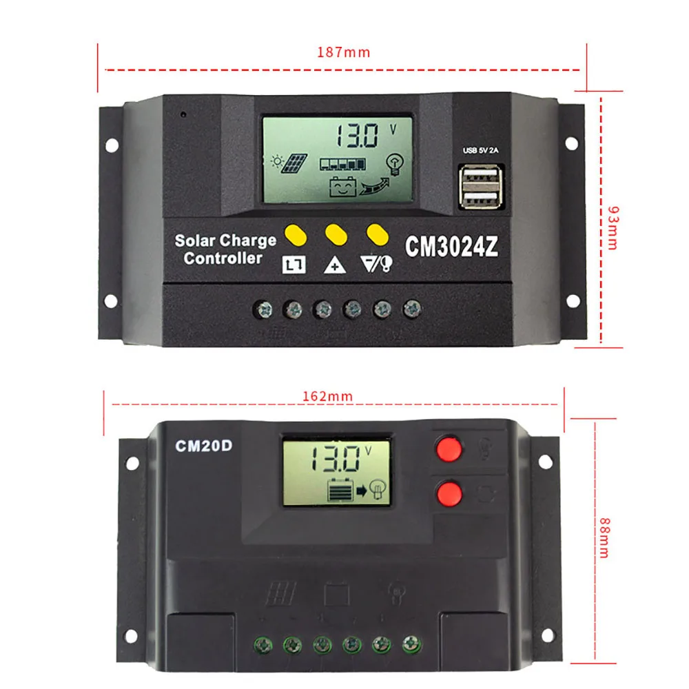 ШИМ Контроллер заряда солнечной батареи 10A 20A 30A 40A зарядное устройство ток 12 В 24 В автоматическое распознавание ЖК-дисплей двойной выход USB