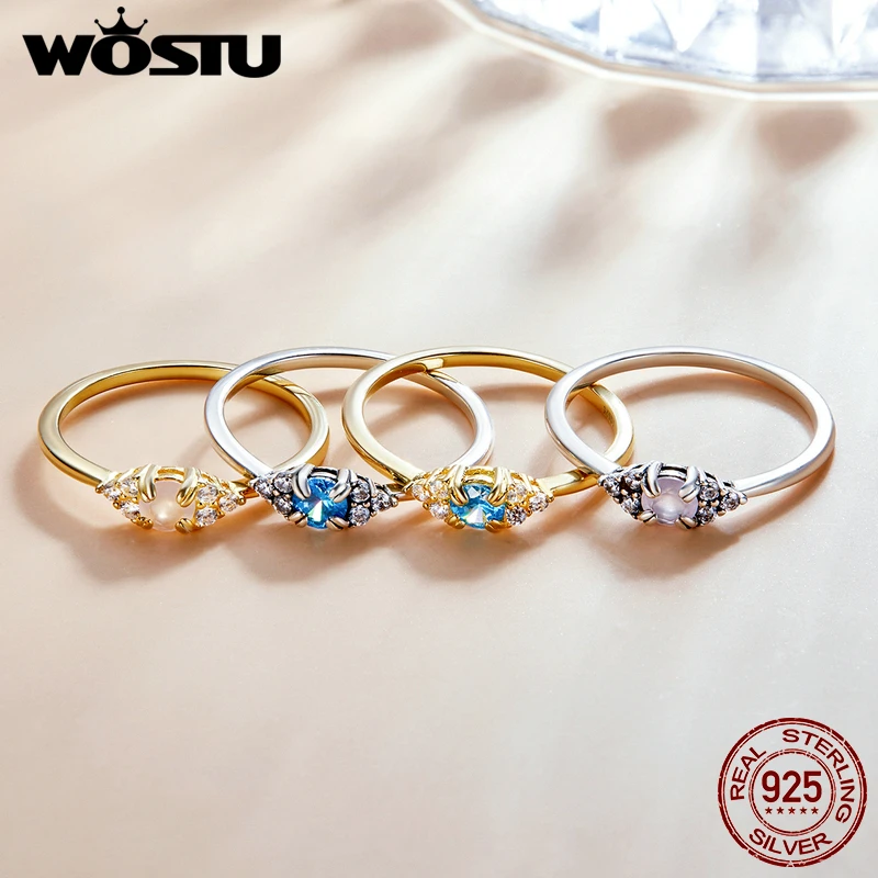 WOSTU Горячая Распродажа, цветное кольцо Halo, 925 пробы, серебро, ...