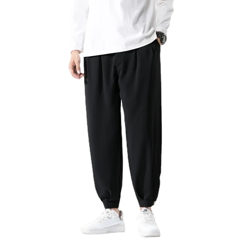 Повседневные брюки, летние тонкие быстросохнущие укороченные брюки, крутые мужские свободные шелковые брюки, повседневная спортивная уличная одежда