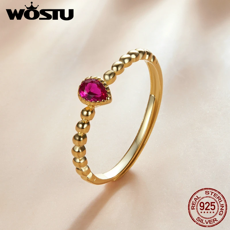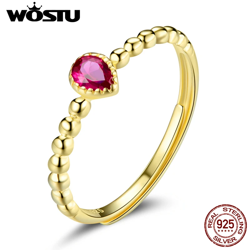 WOSTU Новая розовая капля кольцо 925 пробы серебра в форме капли воды драгоценных камней, открытые, кольца на палец Простые Ювелирные украшения свадебный подарок FIR745