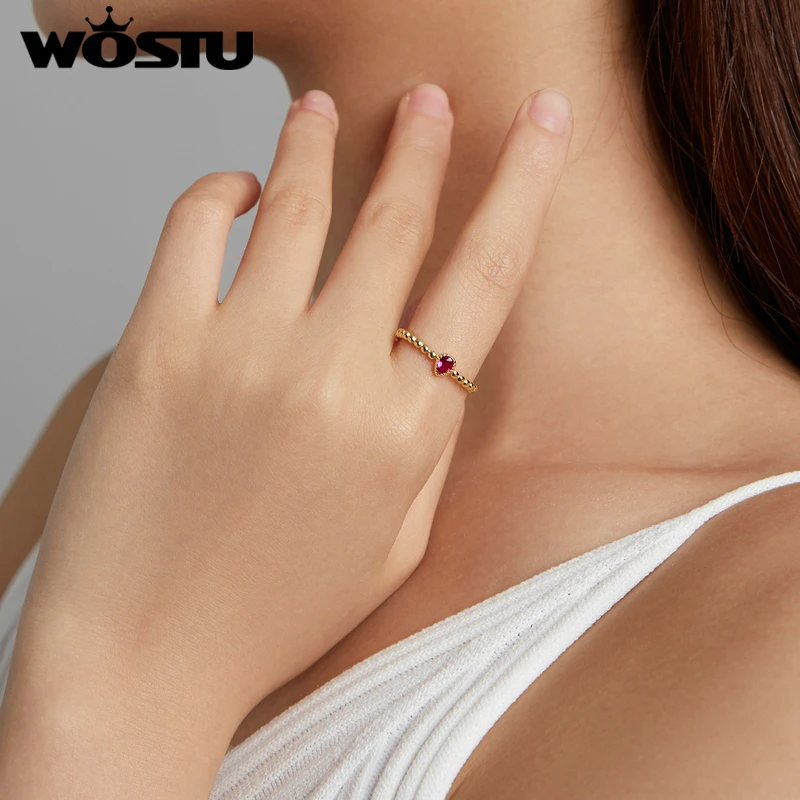 WOSTU Роскошные стерлингового серебра 925 красная роза кольцо с кап...