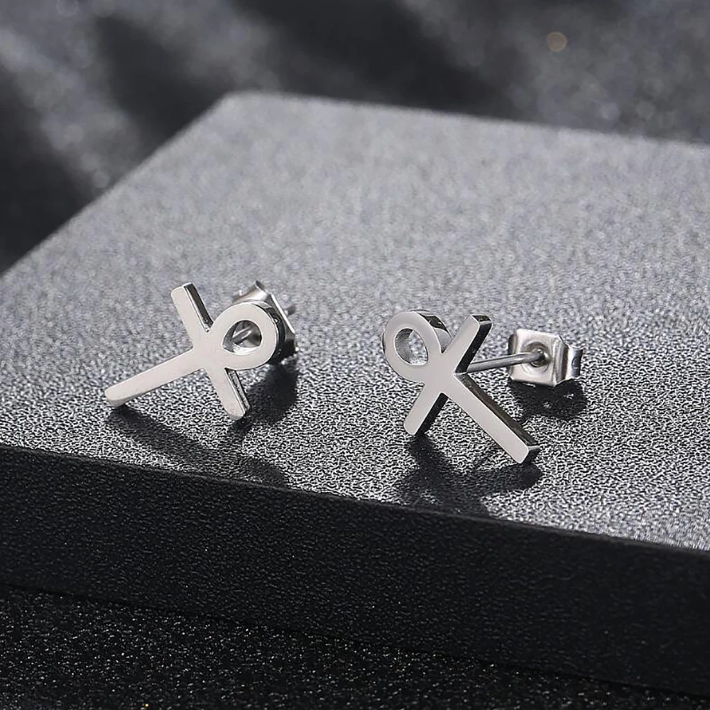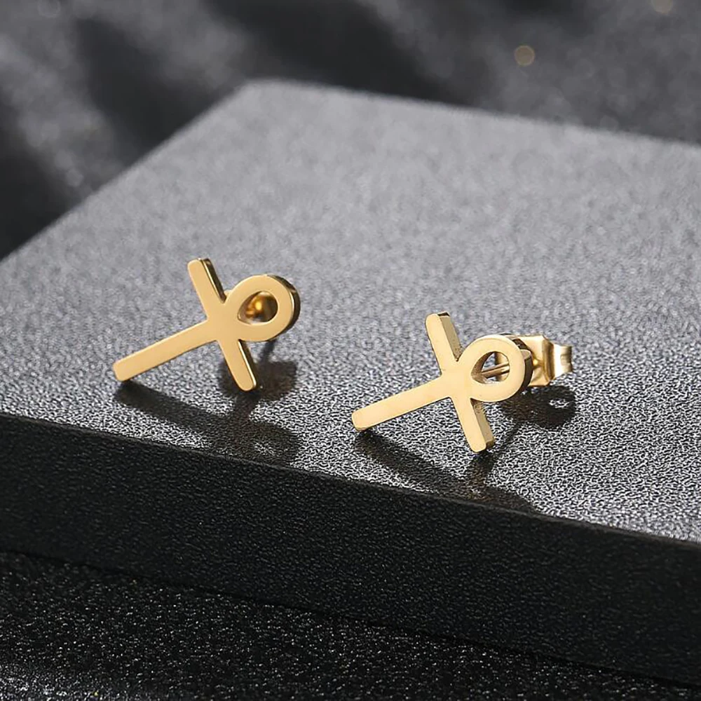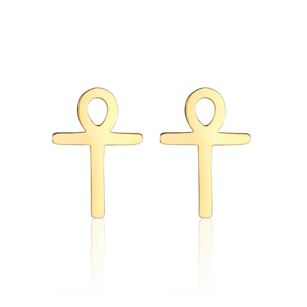 Серьги-гвоздики женские из нержавеющей стали, изящный Золотой АНКХ-крест, египетский фараон, Подарочная бижутерия