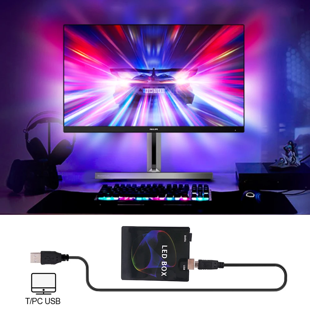 Лента светодиодная, 5 В, для самостоятельной сборки, контроллер окружающей среды, USB, ТВ, HD, монитор компьютера, подсветильник ка, ПК, экран мечты, светильник световой короб для светодиодной ленты WS2812B