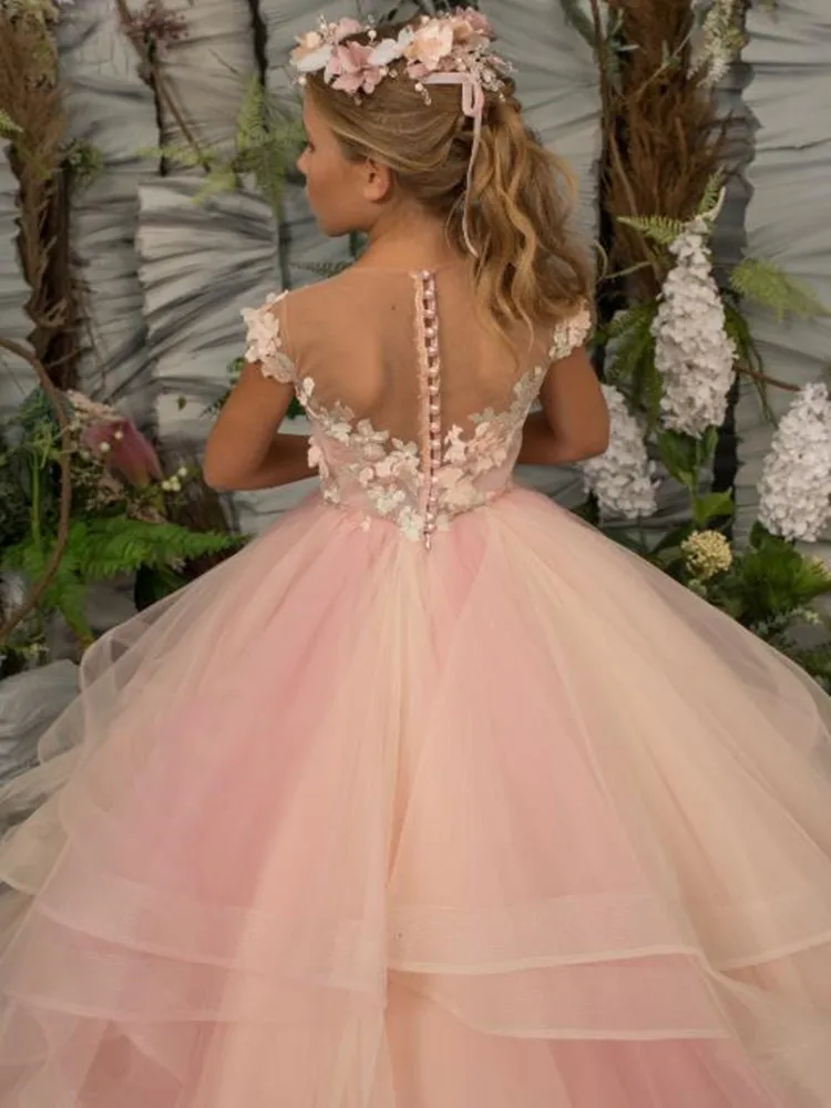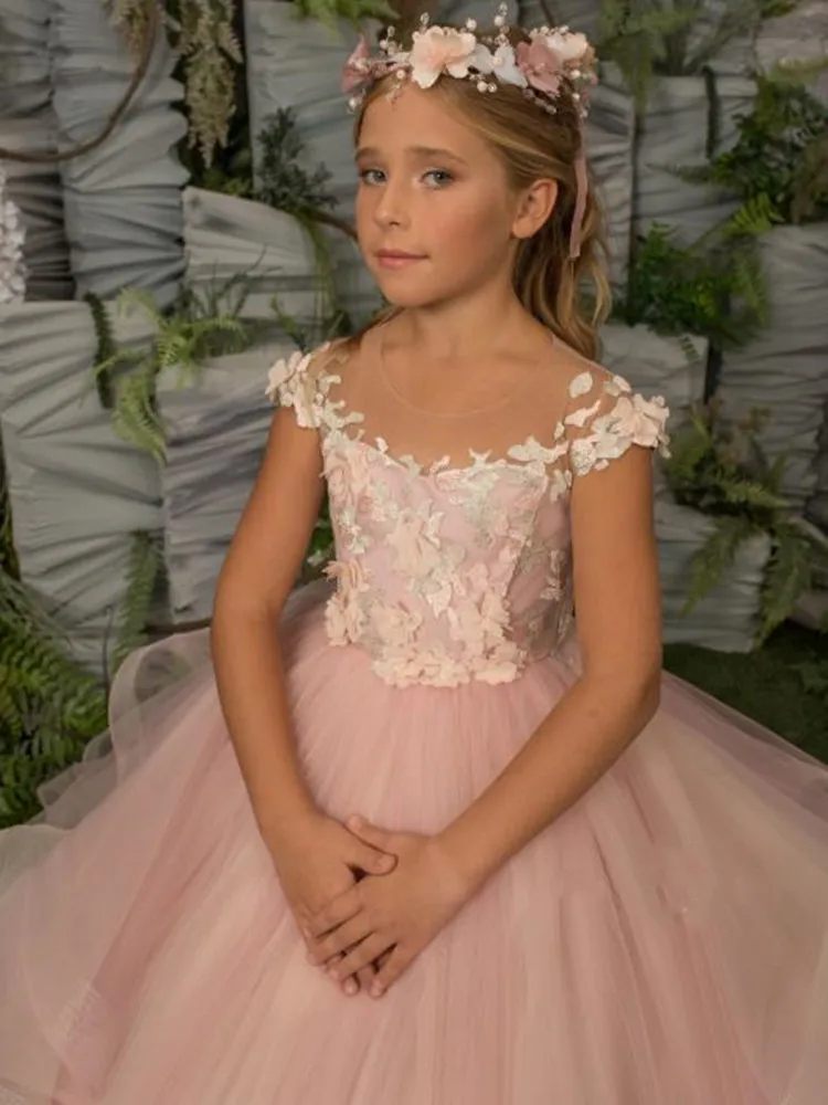 Красивые платья для девочек с розовыми цветами на свадьбу с оборкам...