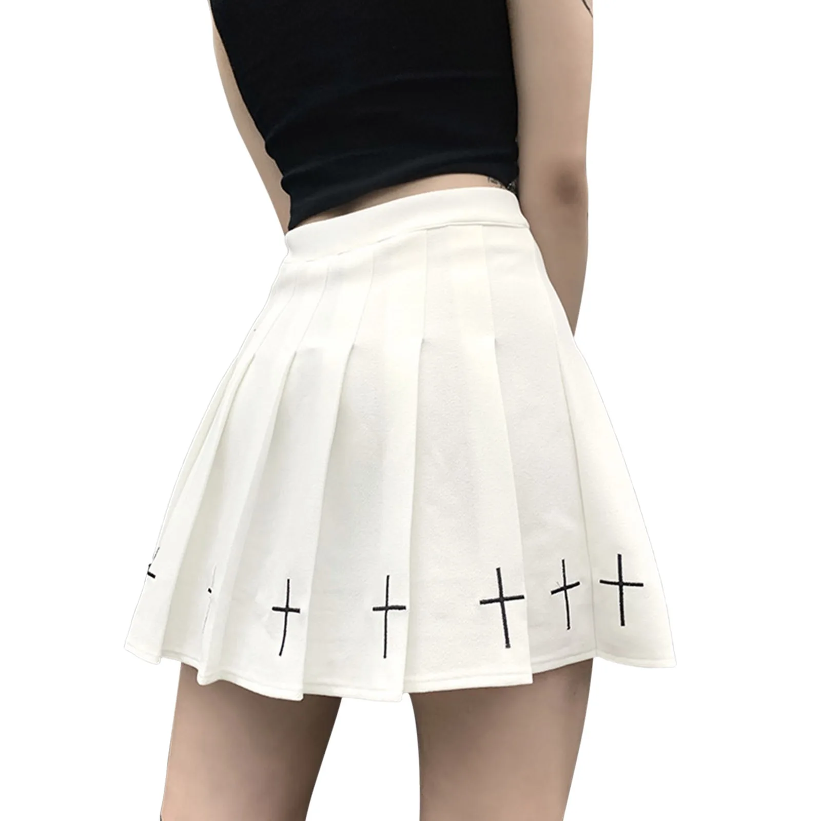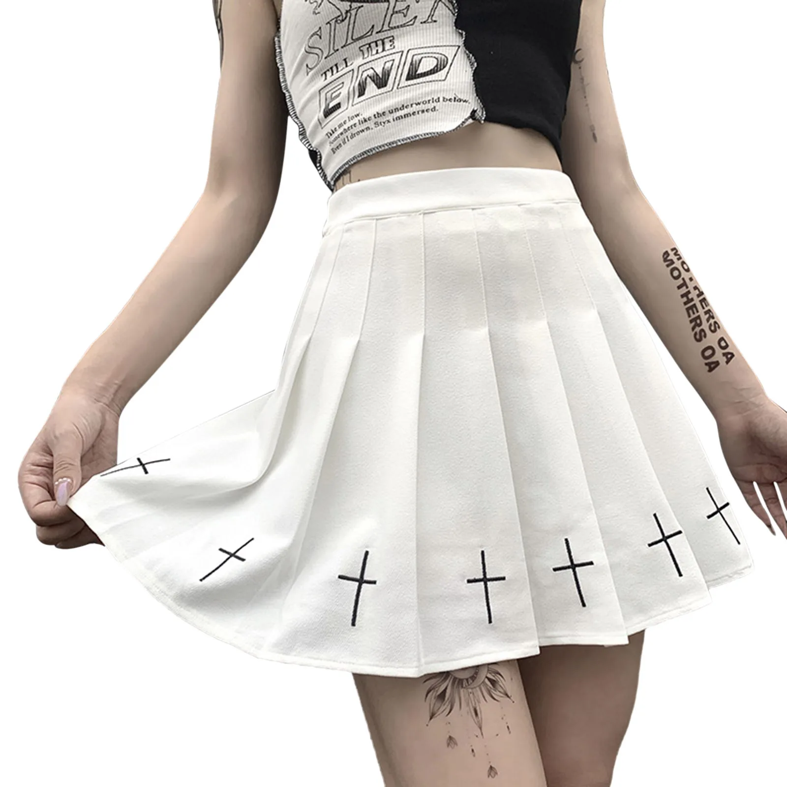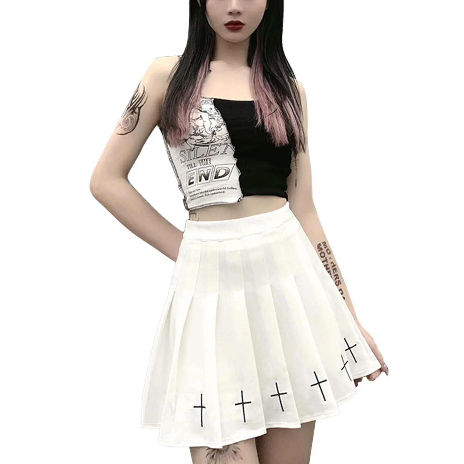 Женская мини-юбка с высокой талией, Готическая плиссированная мини-юбка в стиле панк с перекрестным узором, летняя одежда 2021