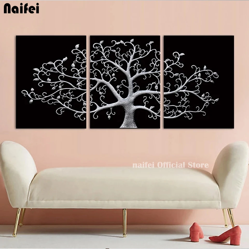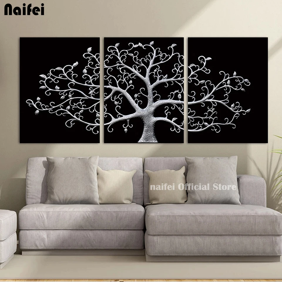 3 Панели черно-белое абстрактное дерево 5d Diy алмазная живопись вышивка крестиком полная квадратная/Круглая Мозаика Алмазная вышивка настенное искусство домашний декор