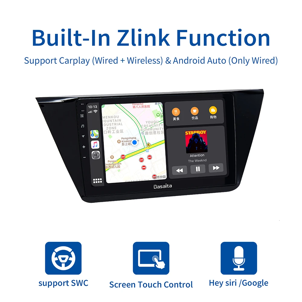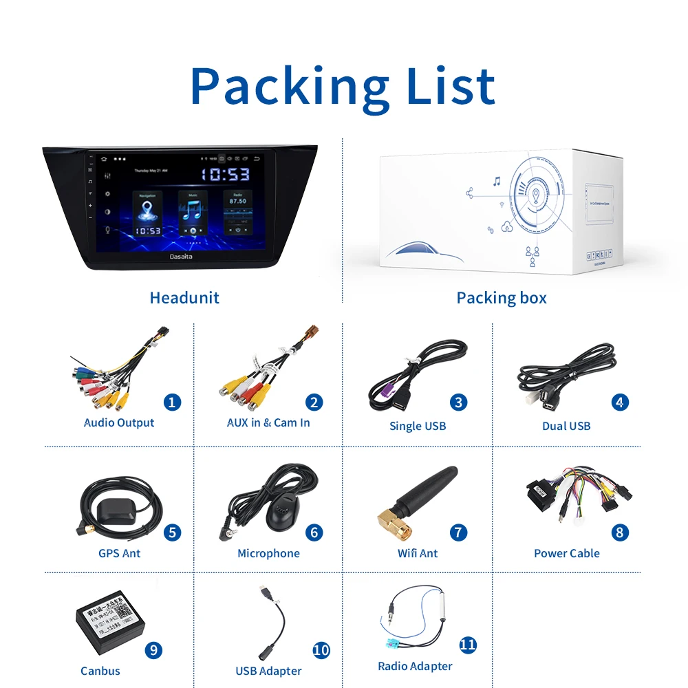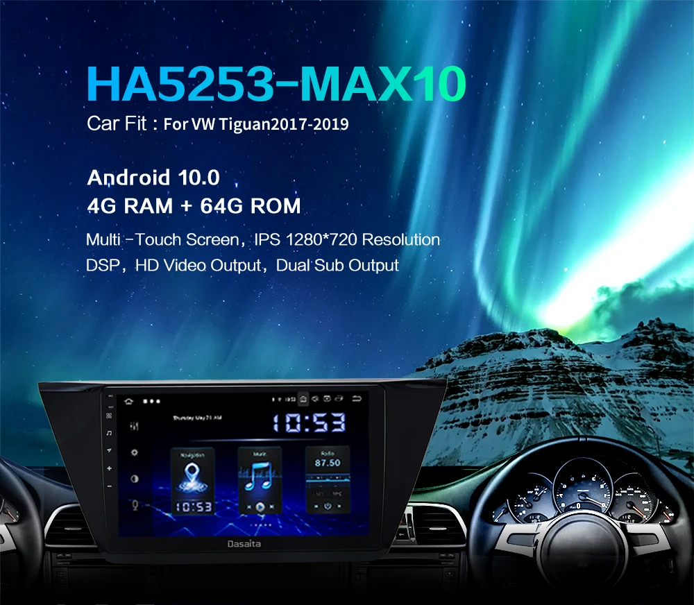 Dasaita 2 Din 10,2 "Android 10,0 автомобильное радио GPS BT 5,0 аудио стерео WIFI USB FM 2Din авто радио для VW Tiguan 2017 2018 2019