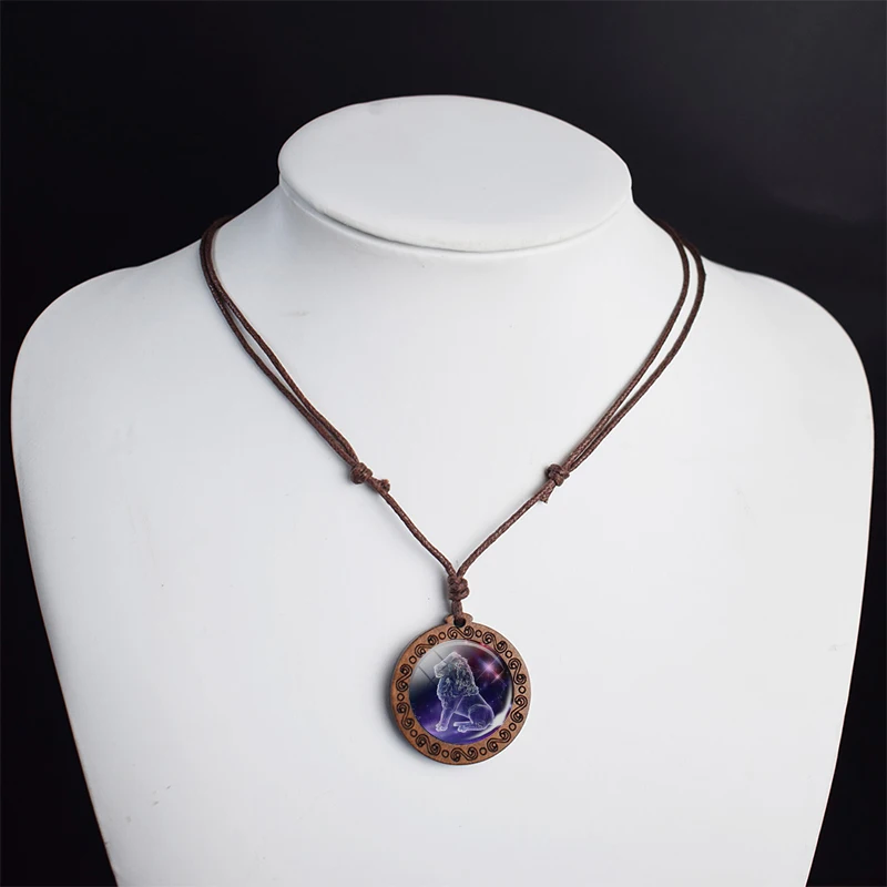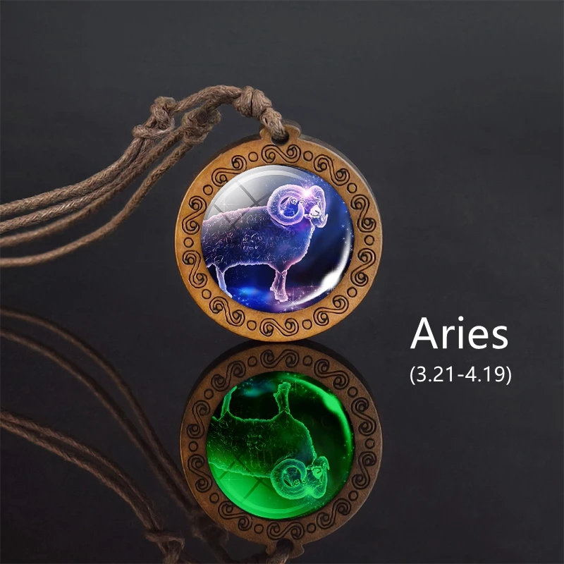 12 Созвездие Ожерелье Светящиеся в темноте знаки зодиака стеклянный кулон Веревка Цепь деревянное ожерелье светящиеся украшения