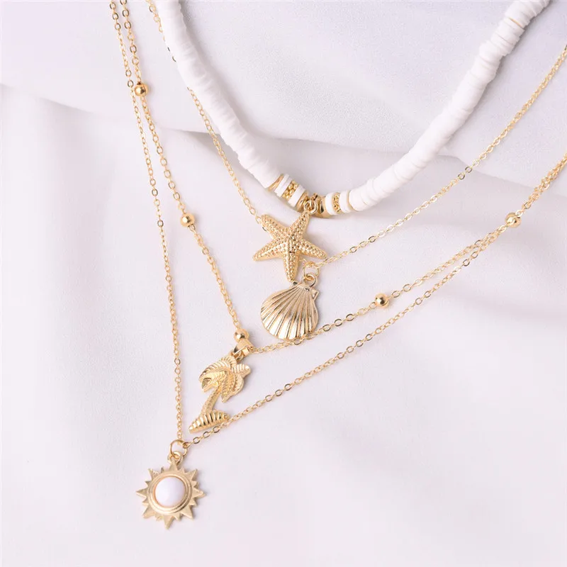 Ожерелье с подвеской в виде ракушек и морских звезд, многослойная ц...