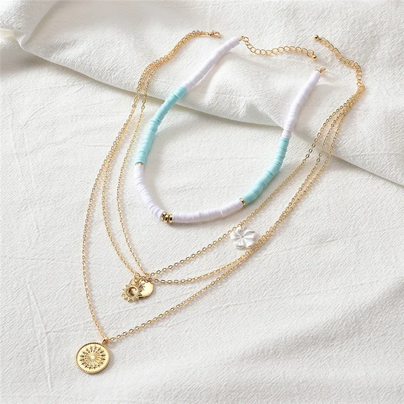 ZOSHI в богемном стиле цепи ожерелье для женщин модная мягкая керамика цветок кулон Многослойные Ожерелье Модные украшения