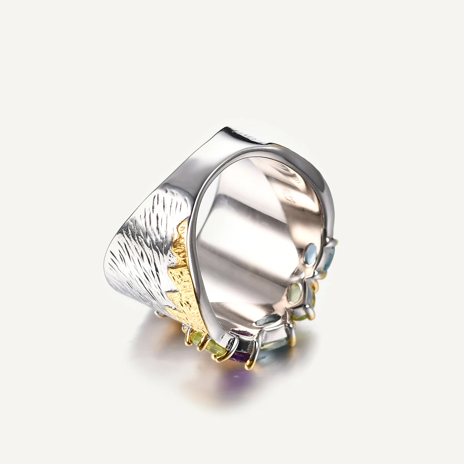 Оригинальное эффектное кольцо из серебра 925 пробы ручной работы, ю...
