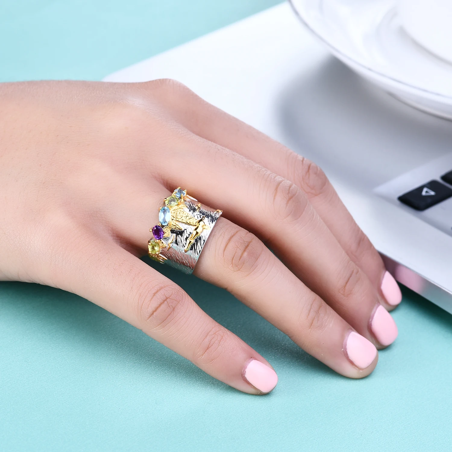 GEM'S BEAUTY 14K кольца из стерлингового серебра с золотым наполнит...