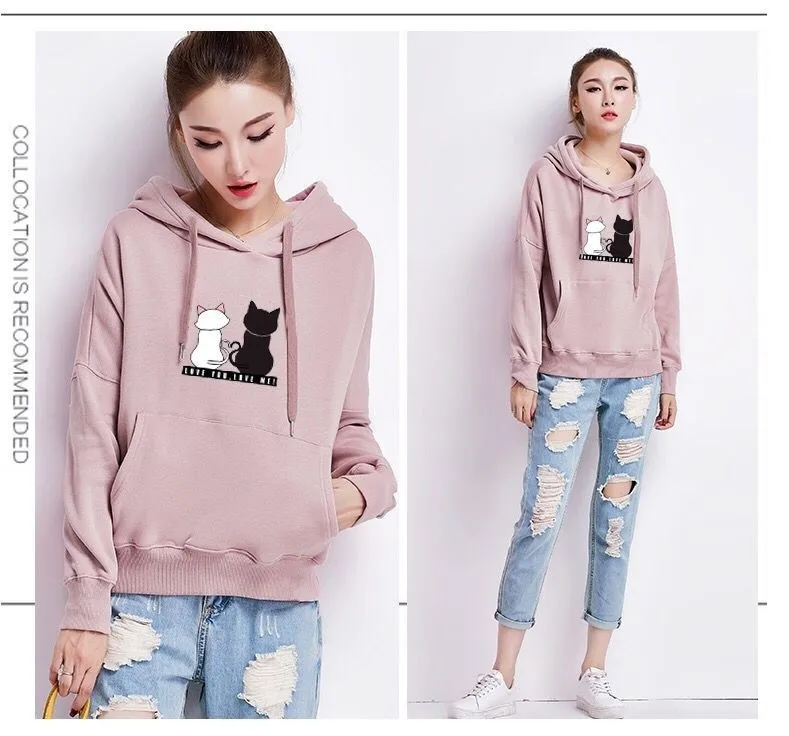 Зимний пуловер, свитшоты, Женская кошачья Милая Женская Толстовка С...