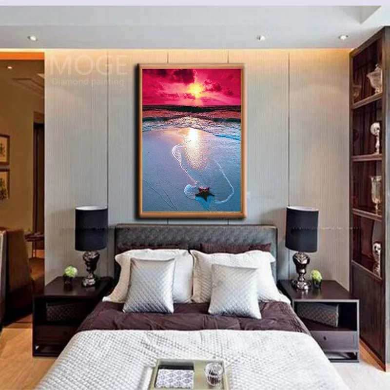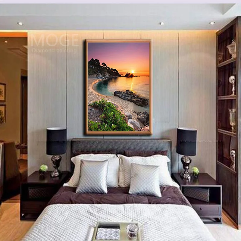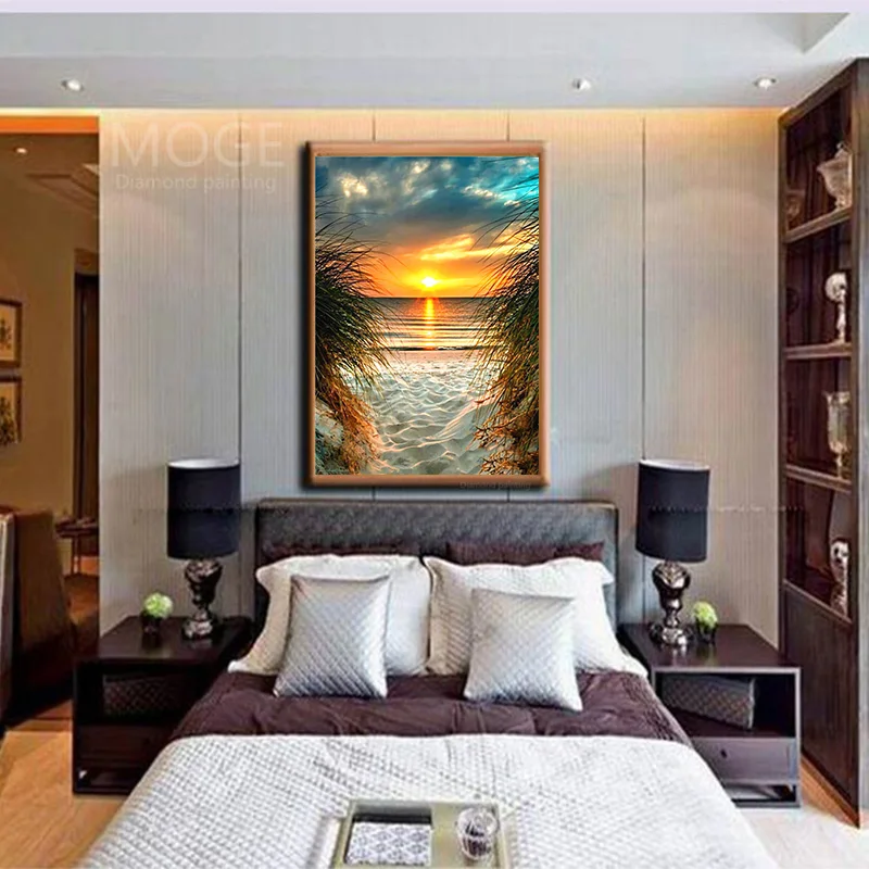 Картина из страз "Закат на пляже", "морской пейзаж", вышивка крестом, стразы, мозаика