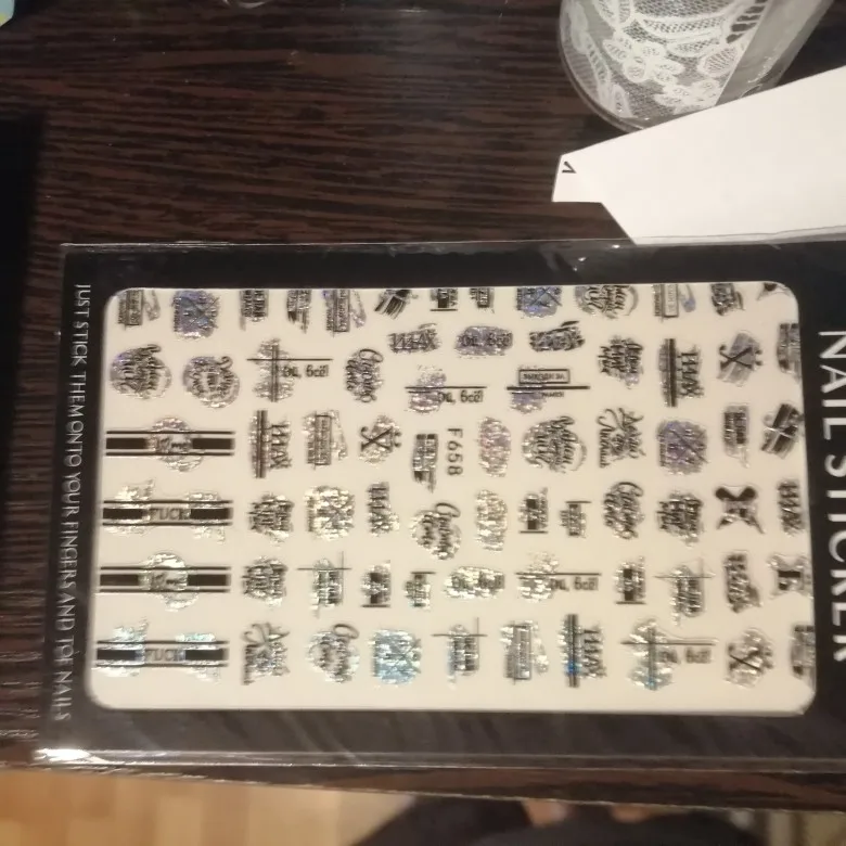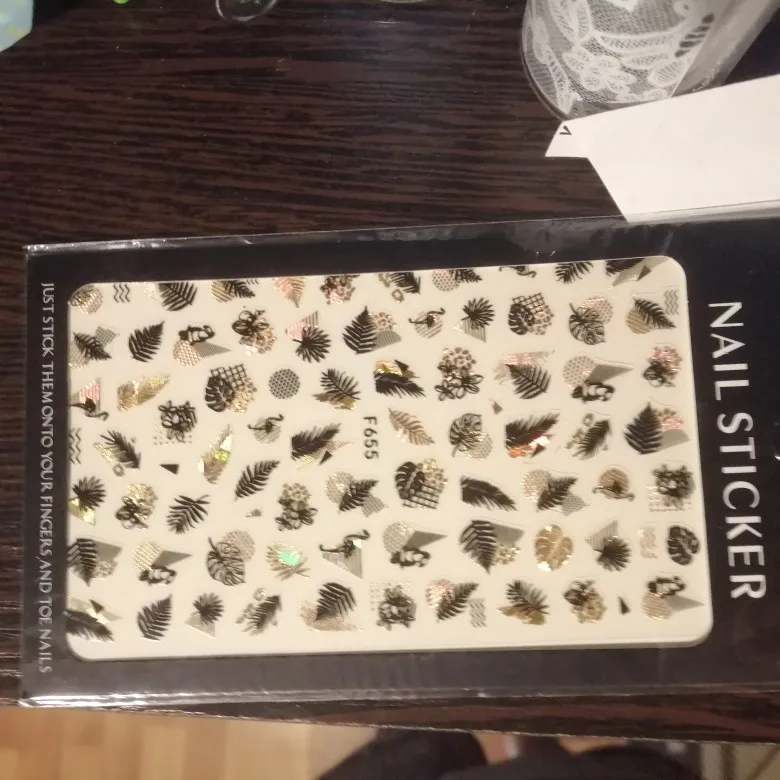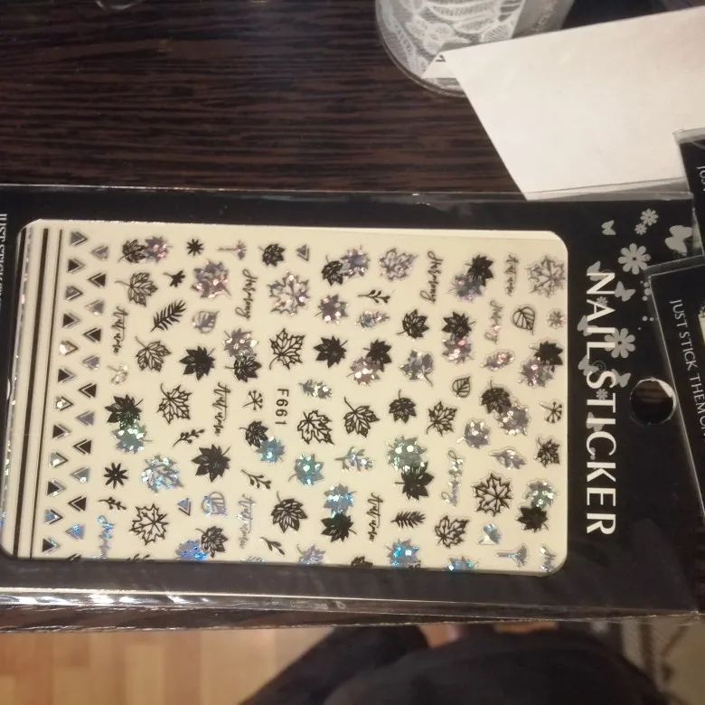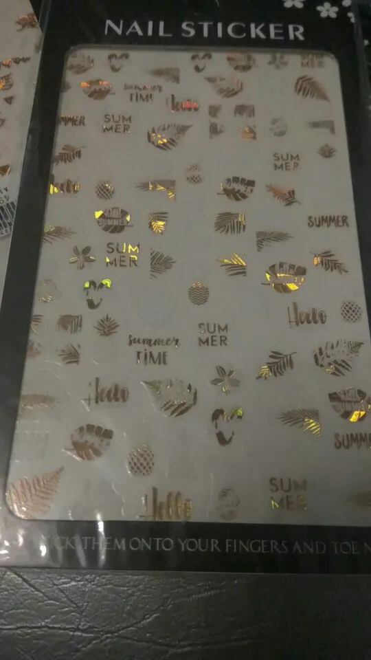 наклейки ,как,на фото.Красивые,блестят.Заказ пришёл быстро,всем довольна.