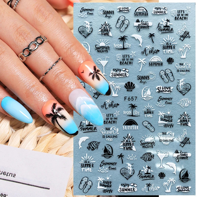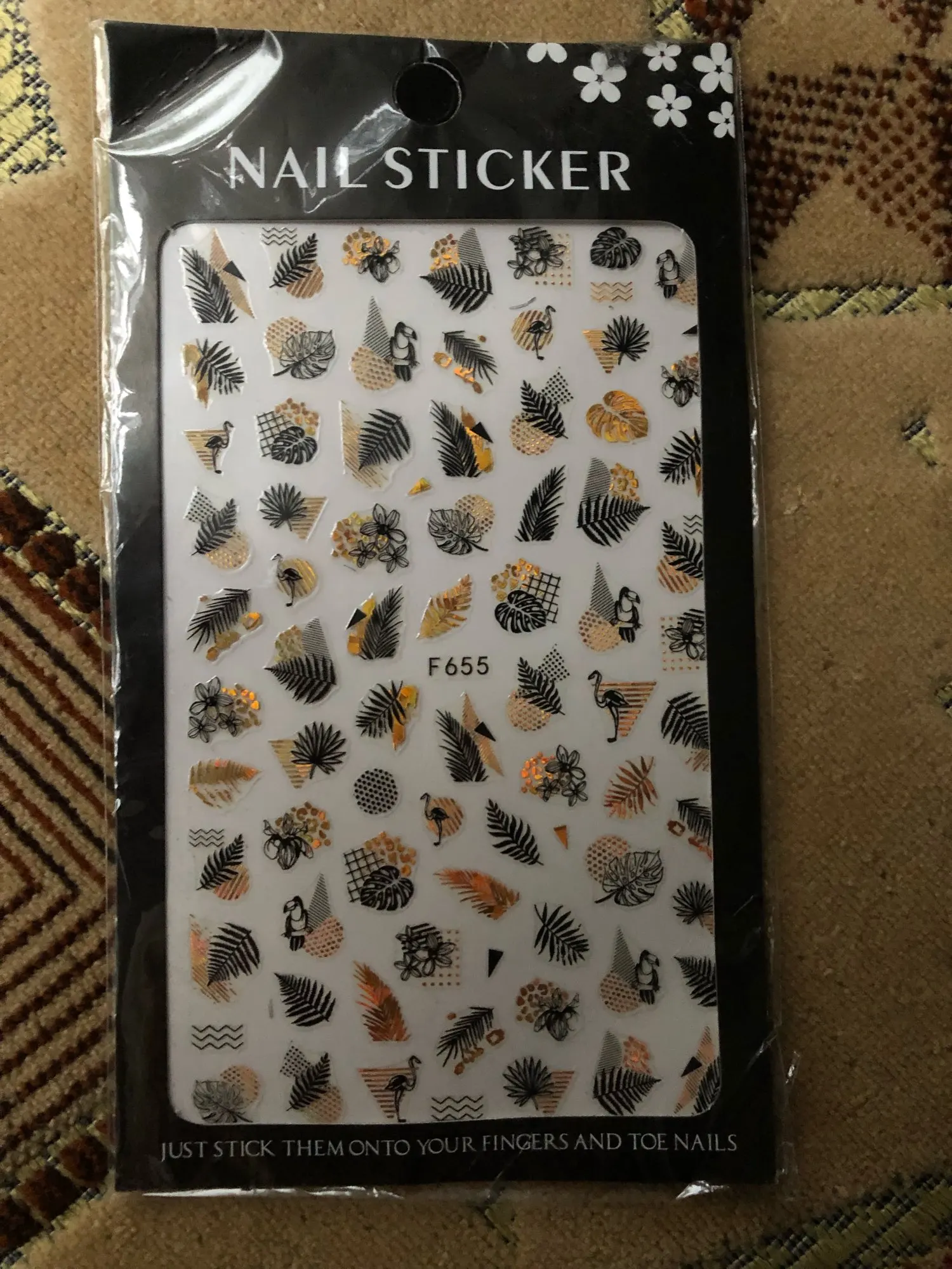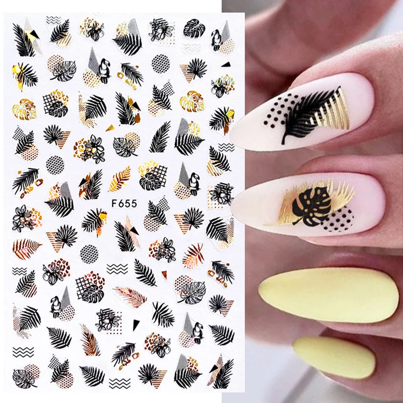 3D-Наклейки для ногтей золотистые и черные с тропическими растениями, 1 шт.