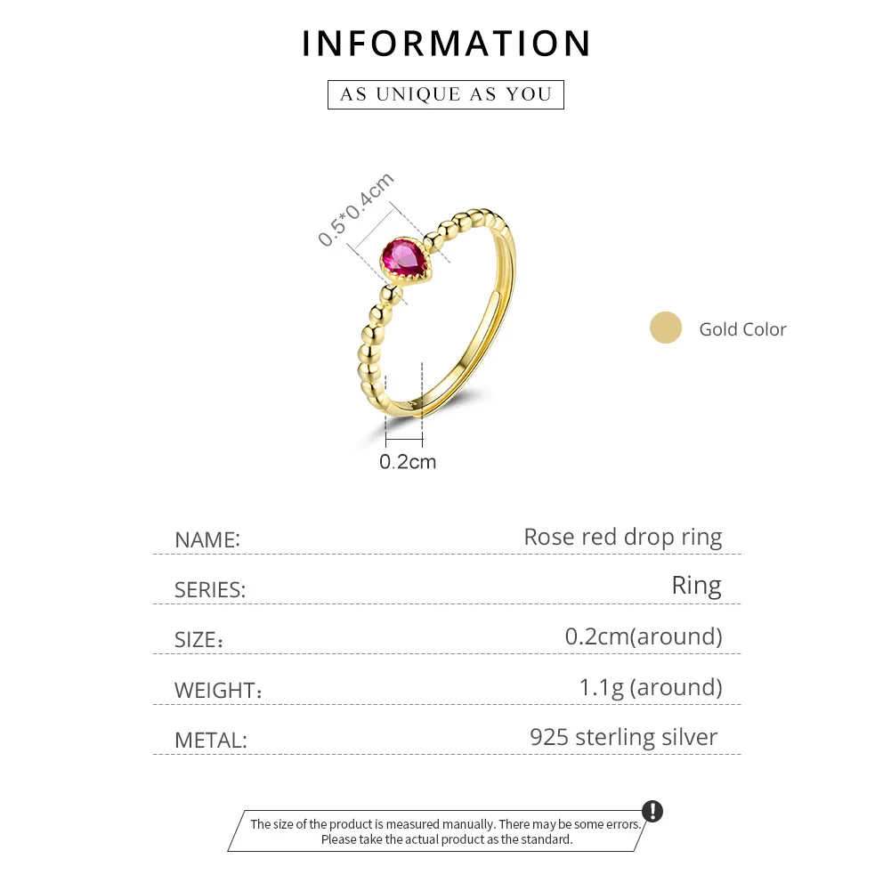 WOSTU Новая розовая капля кольцо 925 пробы серебра в форме капли во...