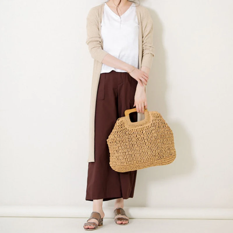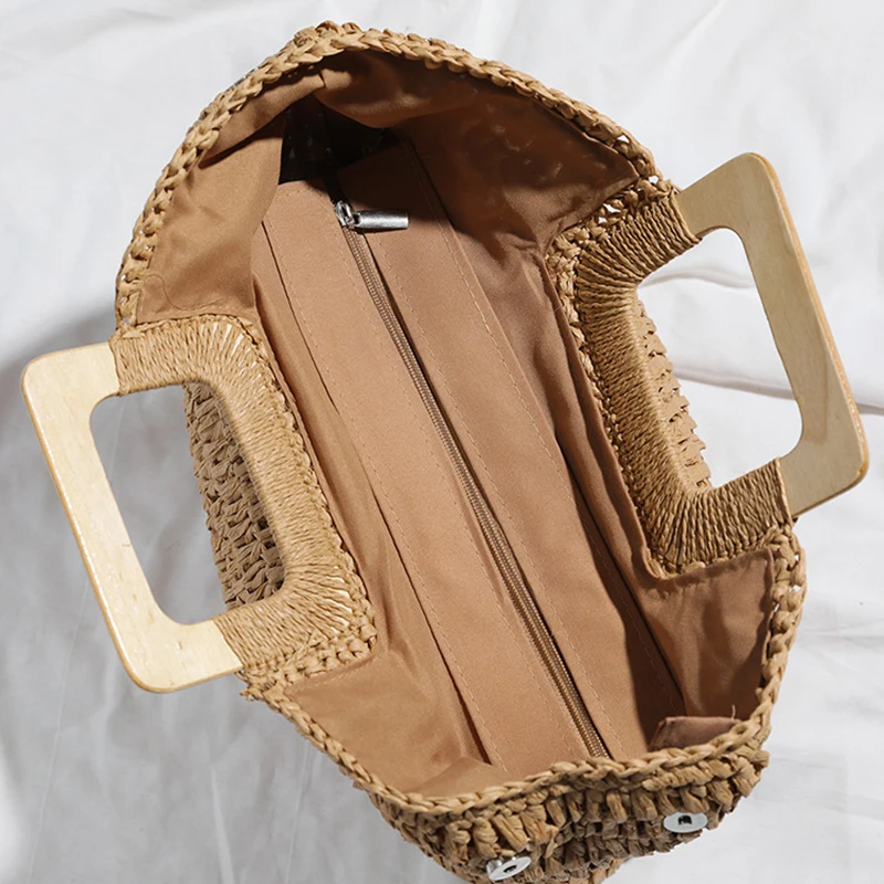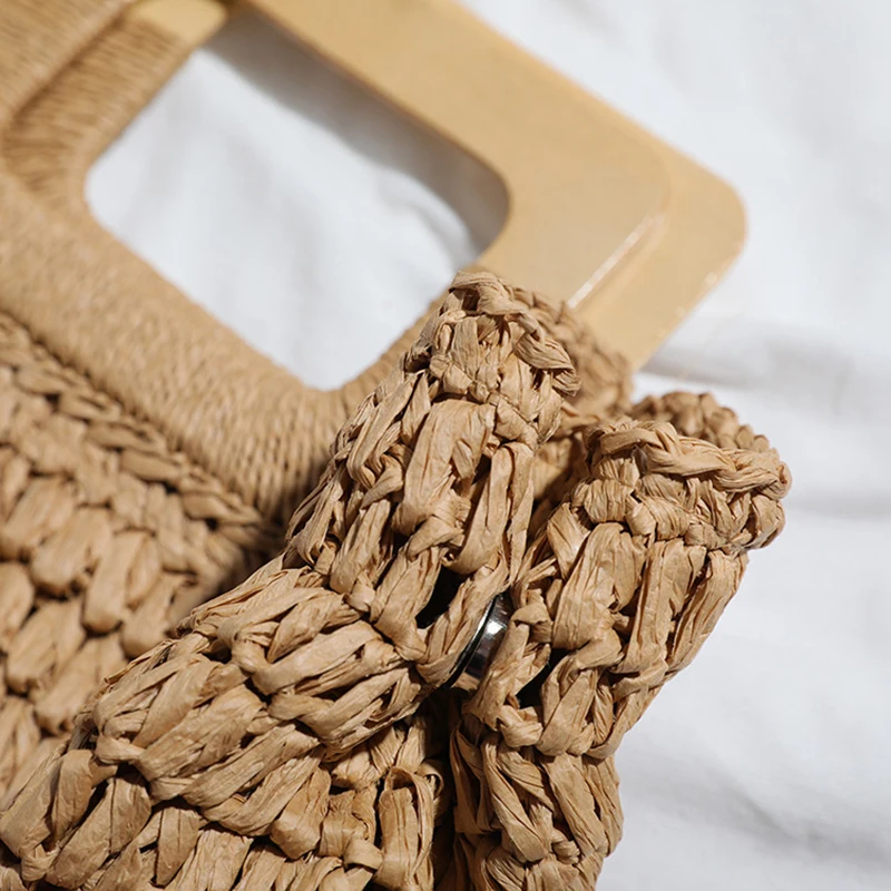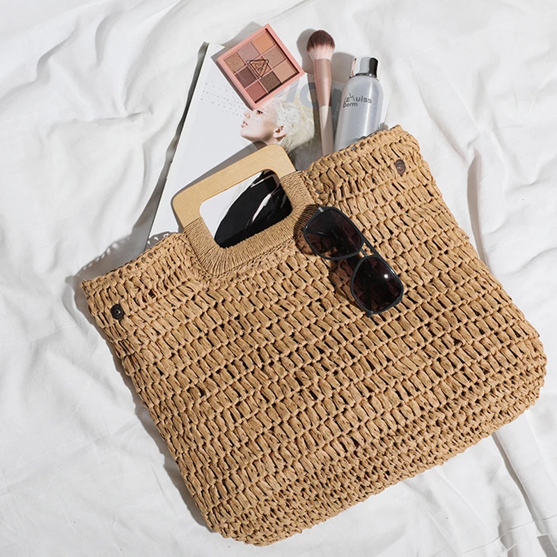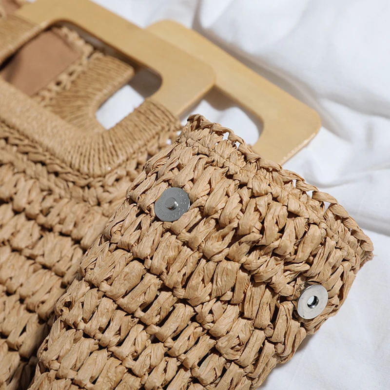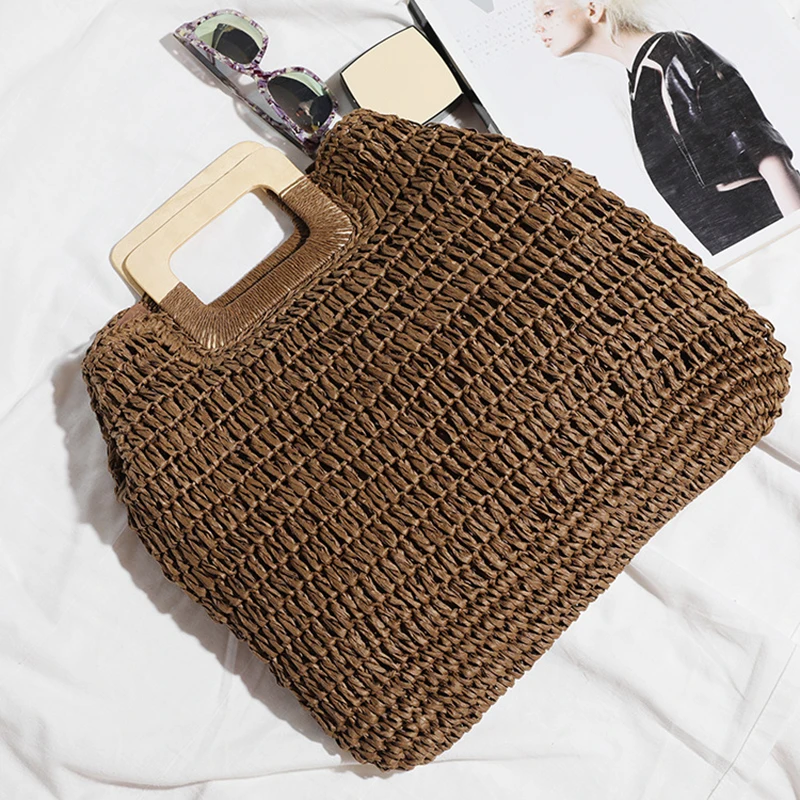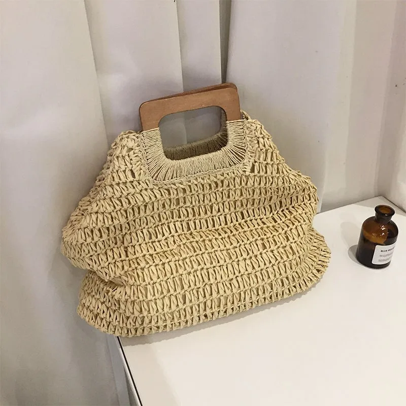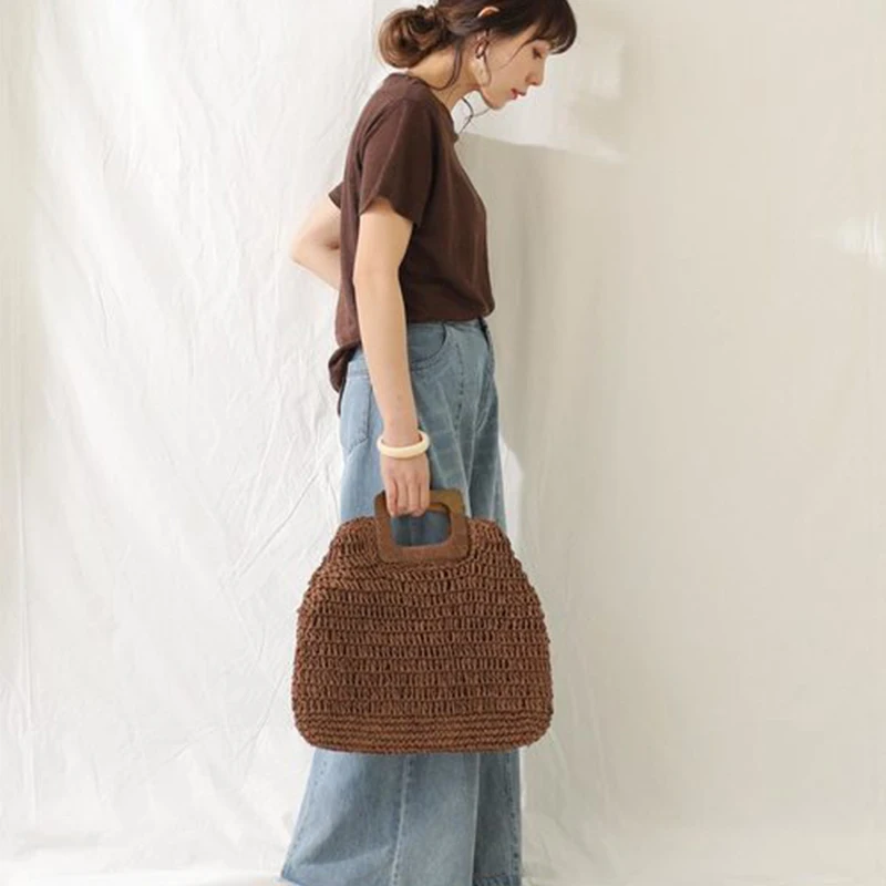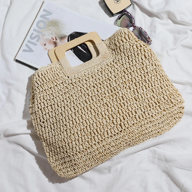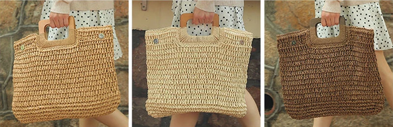 Модные деревянной ручкой женские сумки из натуральной кожи Повседневная сумка-мешок большой Ёмкость Ротанговые соломенные сумки поперек тела плетеная лоза Летняя Пляжная сумка кошелек