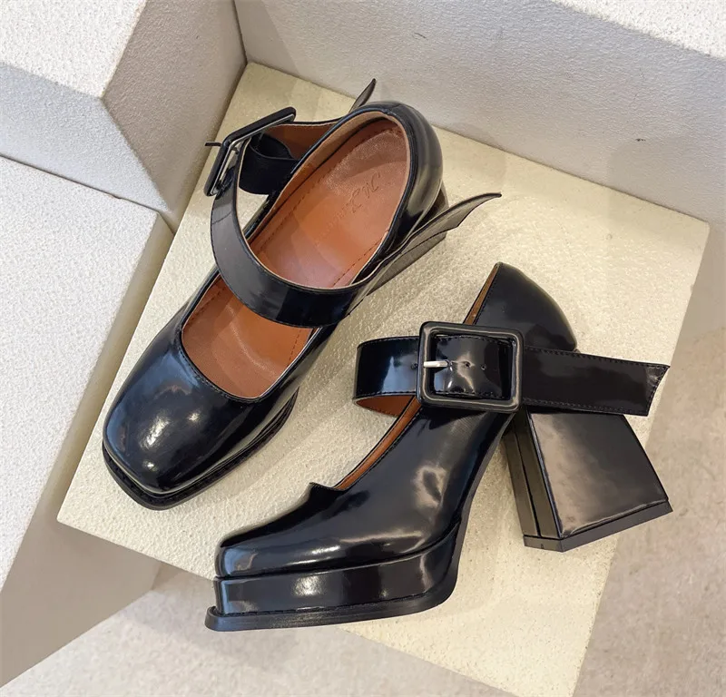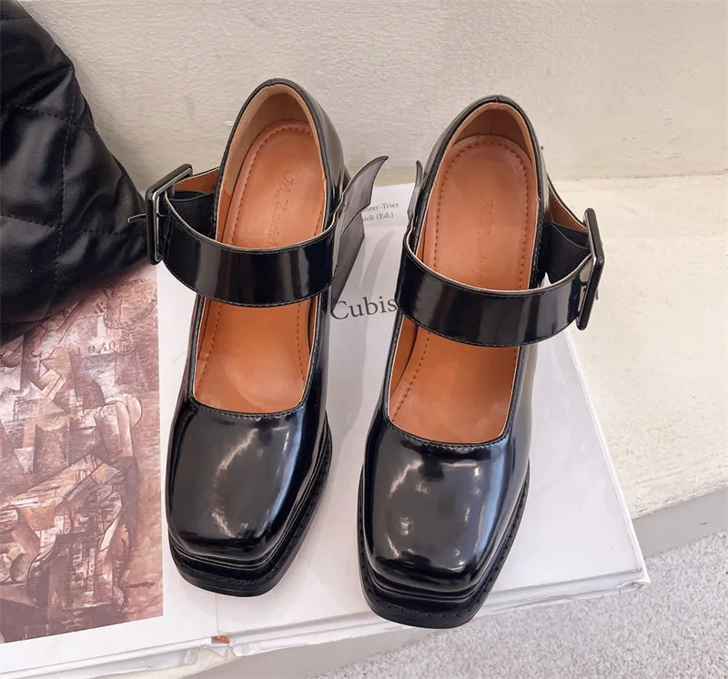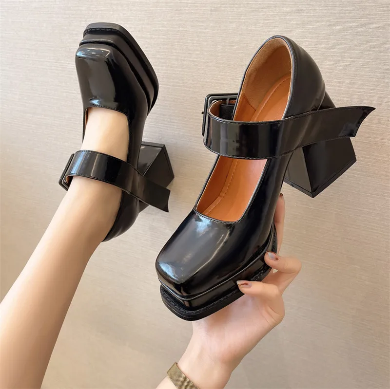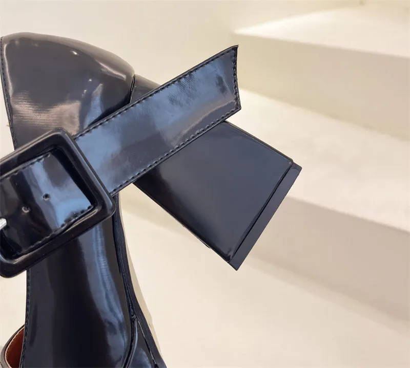 Черные дизайнерские туфли Mary jane на массивной платформе в стиле панк; Женские туфли-лодочки из лакированной кожи на высоком каблуке с квадратным носком