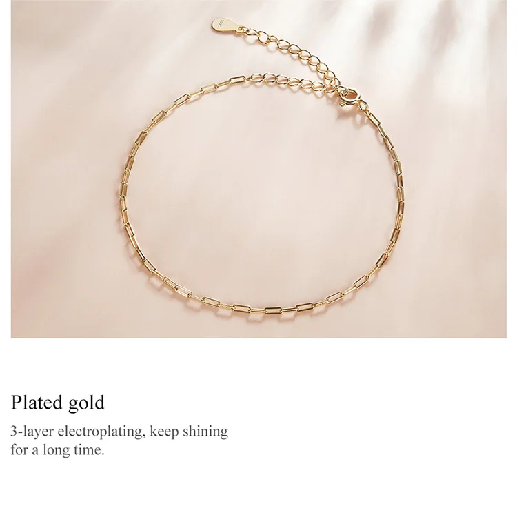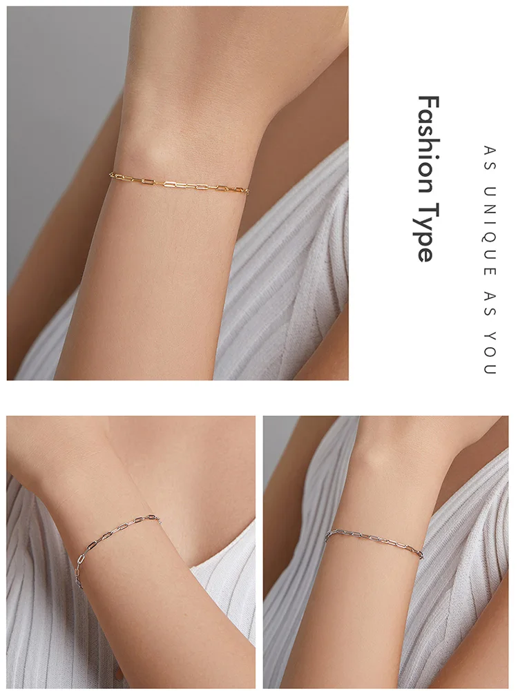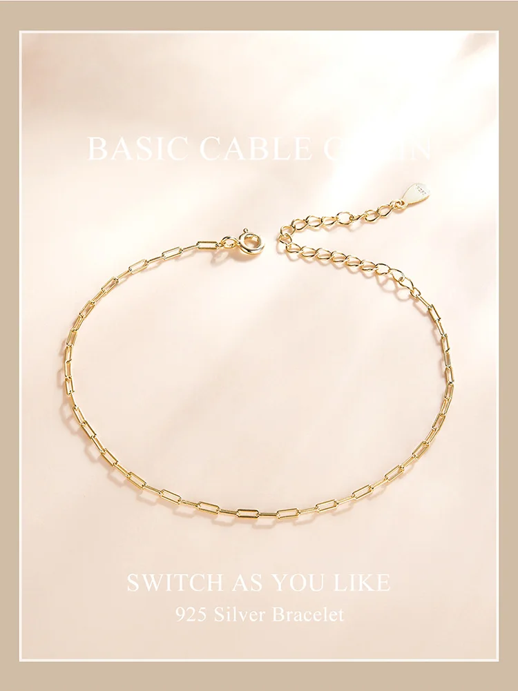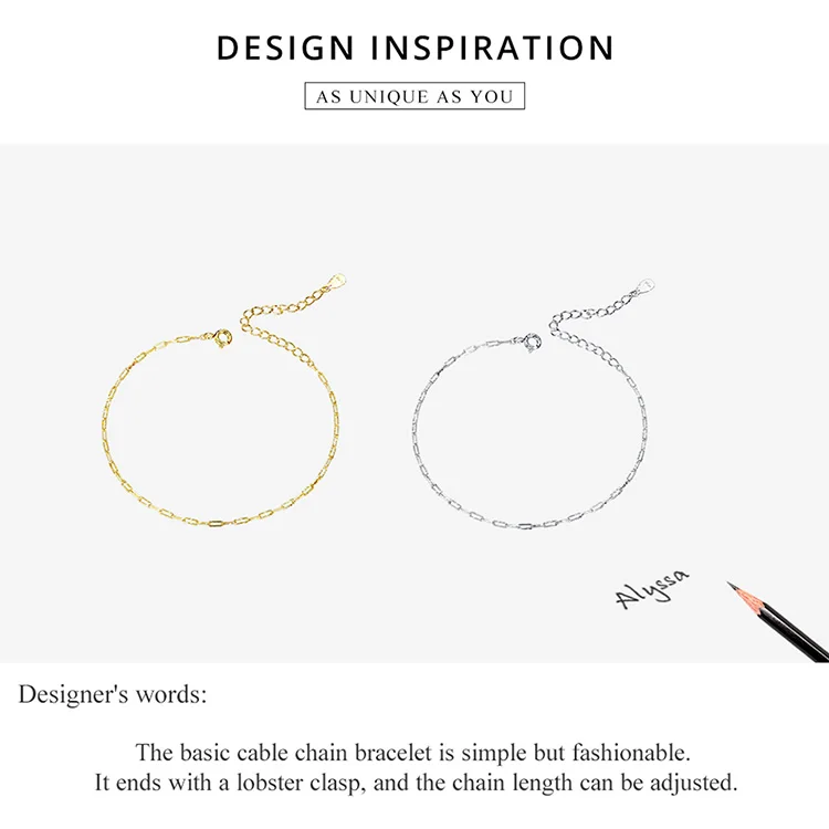 BAMOER два Цвета реальные 925 стерлингового серебра простой браслет золото основной кабель цепи полый Ссылка для женщин, модное ювелирное изделие SCB221