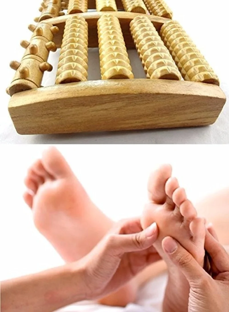 Этот уникальный массажер содержит десять деревянных роликовых стержней, которые отлично снимают стресс для ног или