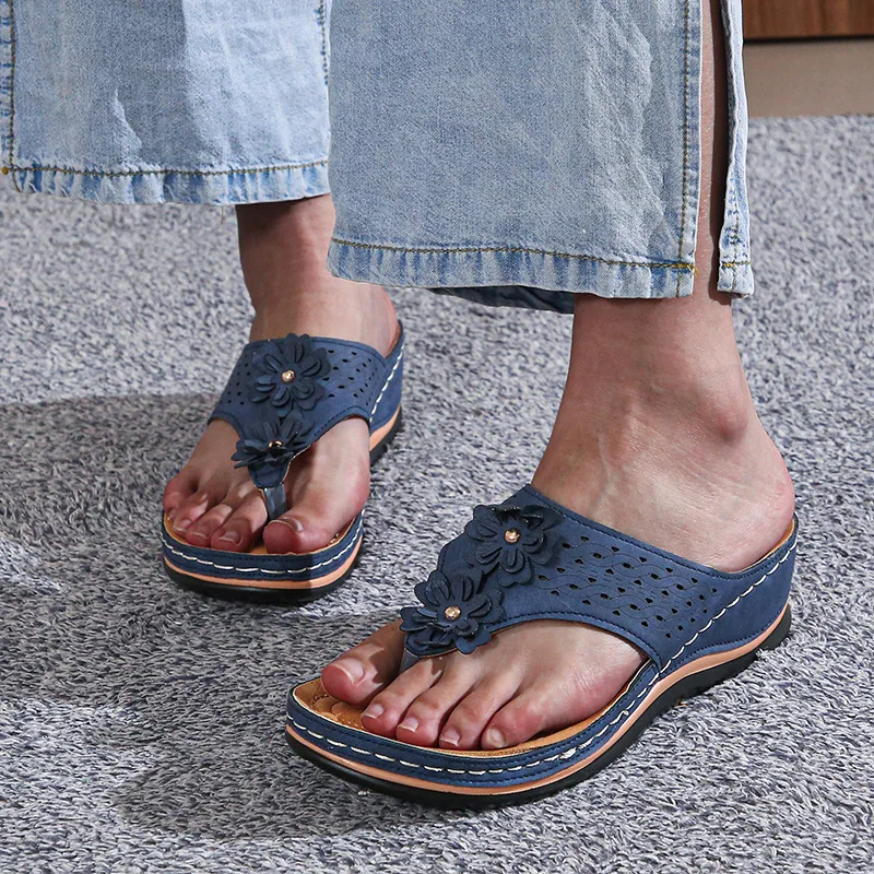Женские 2021 летние шлепанцы с цветами; Женские туфли на платформе; Удобная обувь; Вьетнамки; Женская обувь; Повседневная обувь на танкетке; Женские шитые пляжная обувь размера плюс
