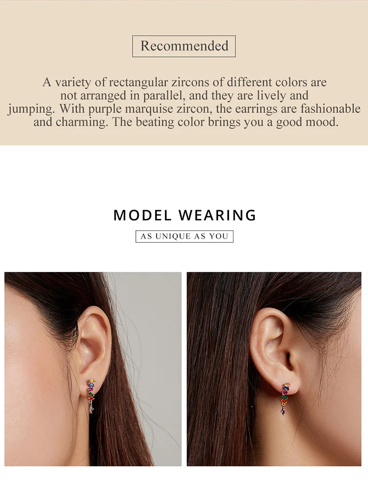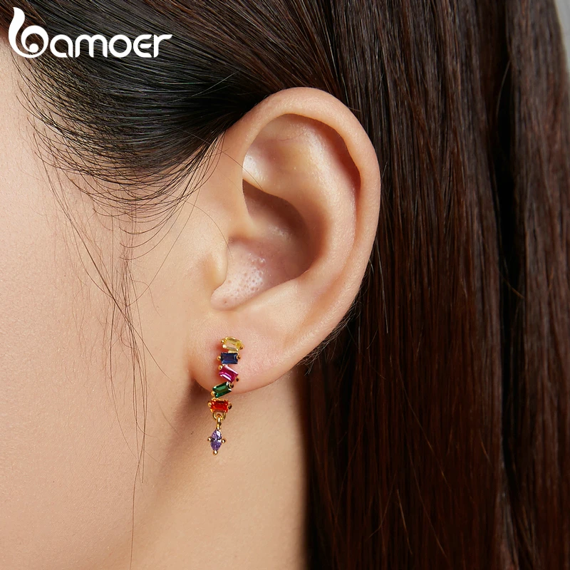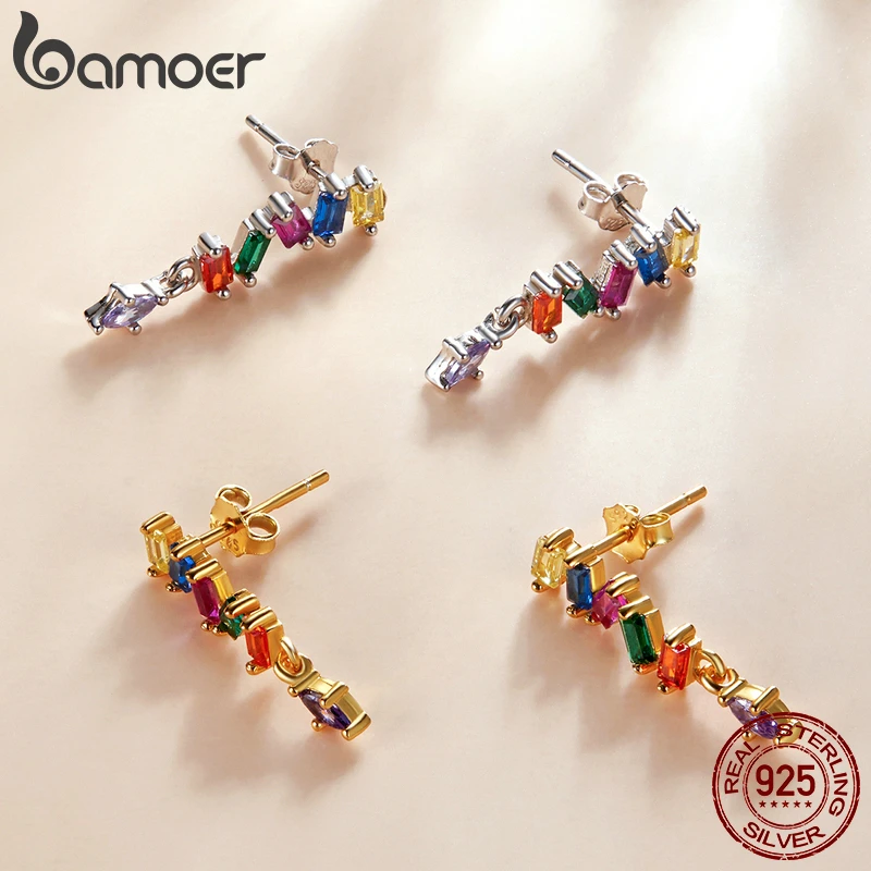 ❤[Описание] различные прямоугольные цирконы разных цветов не расположены параллельно, и они живы и прыгают. С фиолетовым цирконием маркиза, серьги модные и очаровательные. Яркий цвет подарит вам хорошее настроение.❤【Specification】Size:2*0,5 см; Вес: 1,4 г.❤【Material】 925 пробы серебра и ПАВЕ, CZ и покрытая платиной, эти серьги без никеля, без свинца, без кадмия, гипоаллергенны. Гарантия качества, приятный для кожи, удобный и удобный в носке, не вредный для здоровья.❤【Для подарка 】 1 пара сережек и 1 шт Изысканная Подарочная коробка, которая является идеальным подарком для мамы, дочери, дочери, тети, сестры, друзей.❤【BAMOER YOU】 чтобы обеспечить ваше полное удовлетворение, любые вопросы о продуктах BAMOER, просто не стесняйтесь связаться с нами, мы постараемся сделать все возможное, чтобы помочь вам.